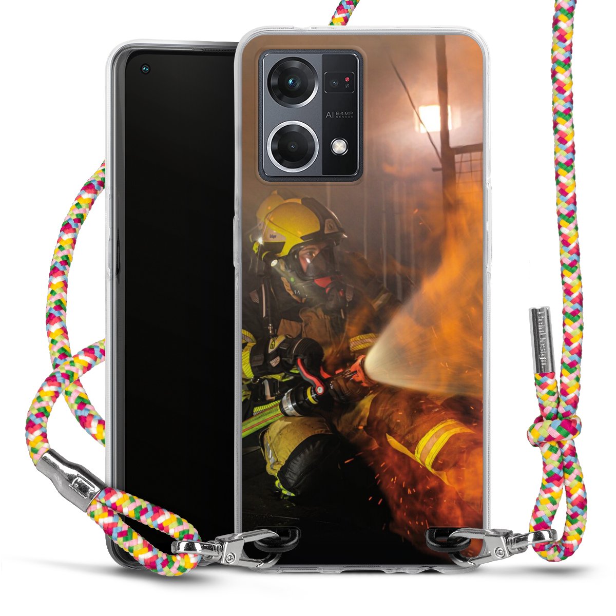 The flexible case is made from a highquality TPU material (thermoplastic Polyurethan). Thanks to its longlasting and break resistant characterisitcs, the case is flexible yet consistent in form and has a great grip and feel. The textile strap made from Polyester gives a chic yet casual accent allowing you to carry your phone like a bag or necklace - a practical gadget perfect for your next adventure. The textile strap is about 1.70 meters long and the length can easily be adjusted through the knots. Our Carry Case is available in Colourful, Mint-Camouflage, Very-Berry, Sahara-Sand and Sparkling-Neon. The ends of the textile strap are covered with metallic end caps to protect them against fraying.