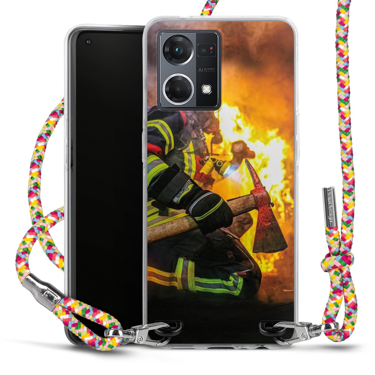 The flexible case is made from a highquality TPU material (thermoplastic Polyurethan). Thanks to its longlasting and break resistant characterisitcs, the case is flexible yet consistent in form and has a great grip and feel. The textile strap made from Polyester gives a chic yet casual accent allowing you to carry your phone like a bag or necklace - a practical gadget perfect for your next adventure. The textile strap is about 1.70 meters long and the length can easily be adjusted through the knots. Our Carry Case is available in Colourful, Mint-Camouflage, Very-Berry, Sahara-Sand and Sparkling-Neon. The ends of the textile strap are covered with metallic end caps to protect them against fraying.