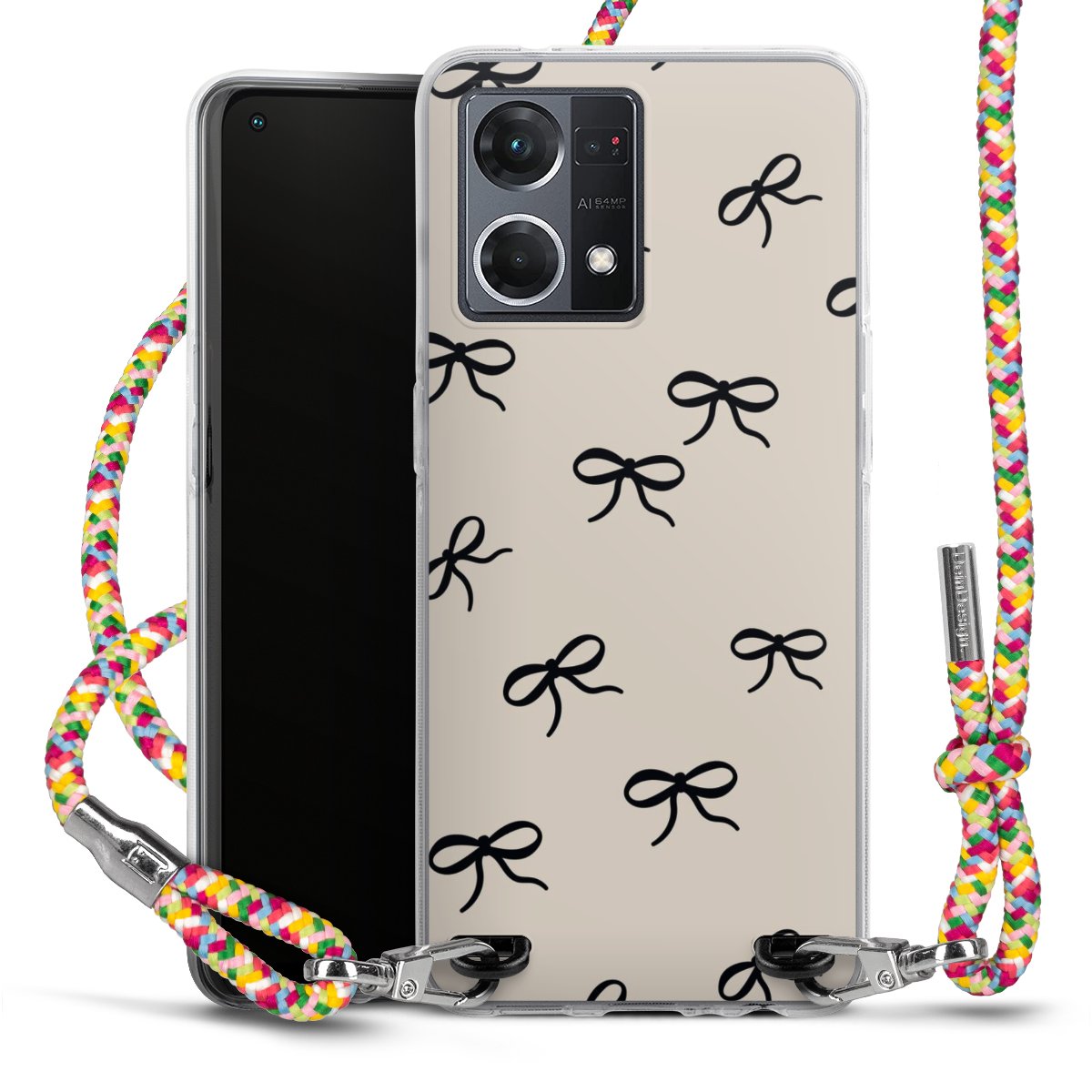 The flexible case is made from a highquality TPU material (thermoplastic Polyurethan). Thanks to its longlasting and break resistant characterisitcs, the case is flexible yet consistent in form and has a great grip and feel. The textile strap made from Polyester gives a chic yet casual accent allowing you to carry your phone like a bag or necklace - a practical gadget perfect for your next adventure. The textile strap is about 1.70 meters long and the length can easily be adjusted through the knots. Our Carry Case is available in Colourful, Mint-Camouflage, Very-Berry, Sahara-Sand and Sparkling-Neon. The ends of the textile strap are covered with metallic end caps to protect them against fraying.
