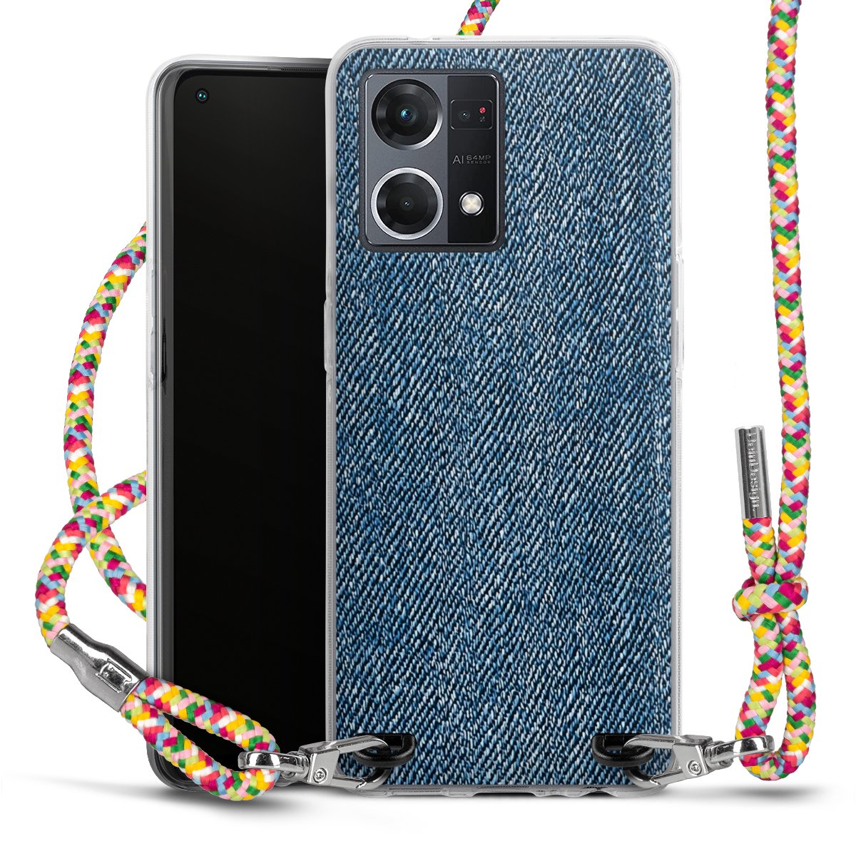 The flexible case is made from a highquality TPU material (thermoplastic Polyurethan). Thanks to its longlasting and break resistant characterisitcs, the case is flexible yet consistent in form and has a great grip and feel. The textile strap made from Polyester gives a chic yet casual accent allowing you to carry your phone like a bag or necklace - a practical gadget perfect for your next adventure. The textile strap is about 1.70 meters long and the length can easily be adjusted through the knots. Our Carry Case is available in Colourful, Mint-Camouflage, Very-Berry, Sahara-Sand and Sparkling-Neon. The ends of the textile strap are covered with metallic end caps to protect them against fraying.