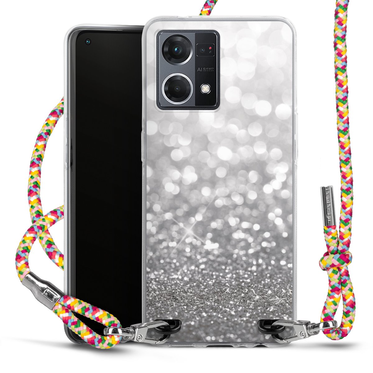 The flexible case is made from a highquality TPU material (thermoplastic Polyurethan). Thanks to its longlasting and break resistant characterisitcs, the case is flexible yet consistent in form and has a great grip and feel. The textile strap made from Polyester gives a chic yet casual accent allowing you to carry your phone like a bag or necklace - a practical gadget perfect for your next adventure. The textile strap is about 1.70 meters long and the length can easily be adjusted through the knots. Our Carry Case is available in Colourful, Mint-Camouflage, Very-Berry, Sahara-Sand and Sparkling-Neon. The ends of the textile strap are covered with metallic end caps to protect them against fraying.