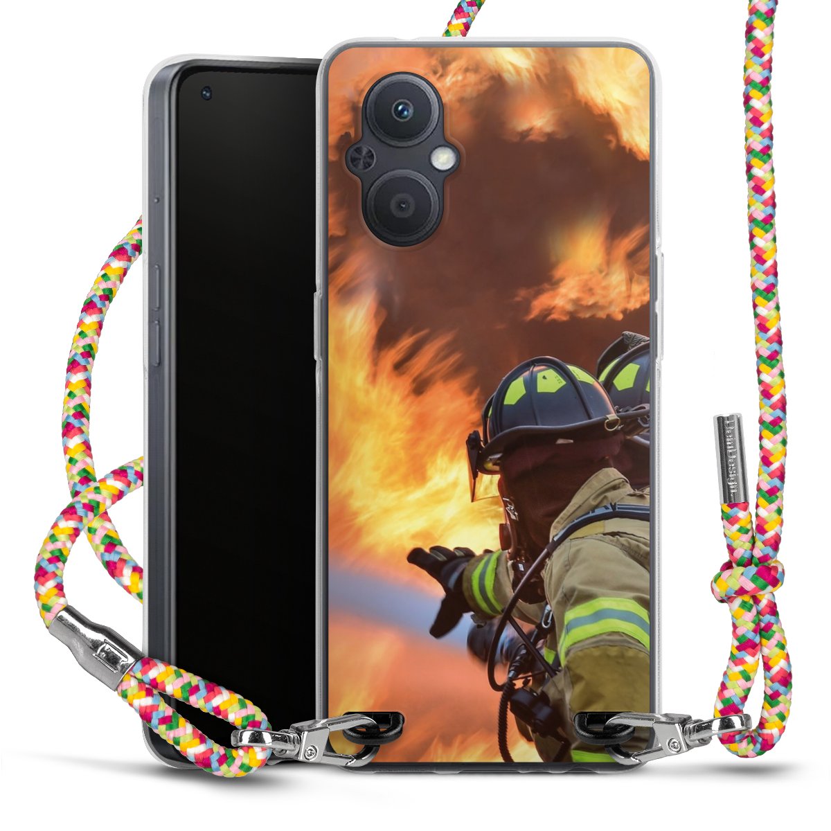 The flexible case is made from a highquality TPU material (thermoplastic Polyurethan). Thanks to its longlasting and break resistant characterisitcs, the case is flexible yet consistent in form and has a great grip and feel. The textile strap made from Polyester gives a chic yet casual accent allowing you to carry your phone like a bag or necklace - a practical gadget perfect for your next adventure. The textile strap is about 1.70 meters long and the length can easily be adjusted through the knots. Our Carry Case is available in Colourful, Mint-Camouflage, Very-Berry, Sahara-Sand and Sparkling-Neon. The ends of the textile strap are covered with metallic end caps to protect them against fraying.
