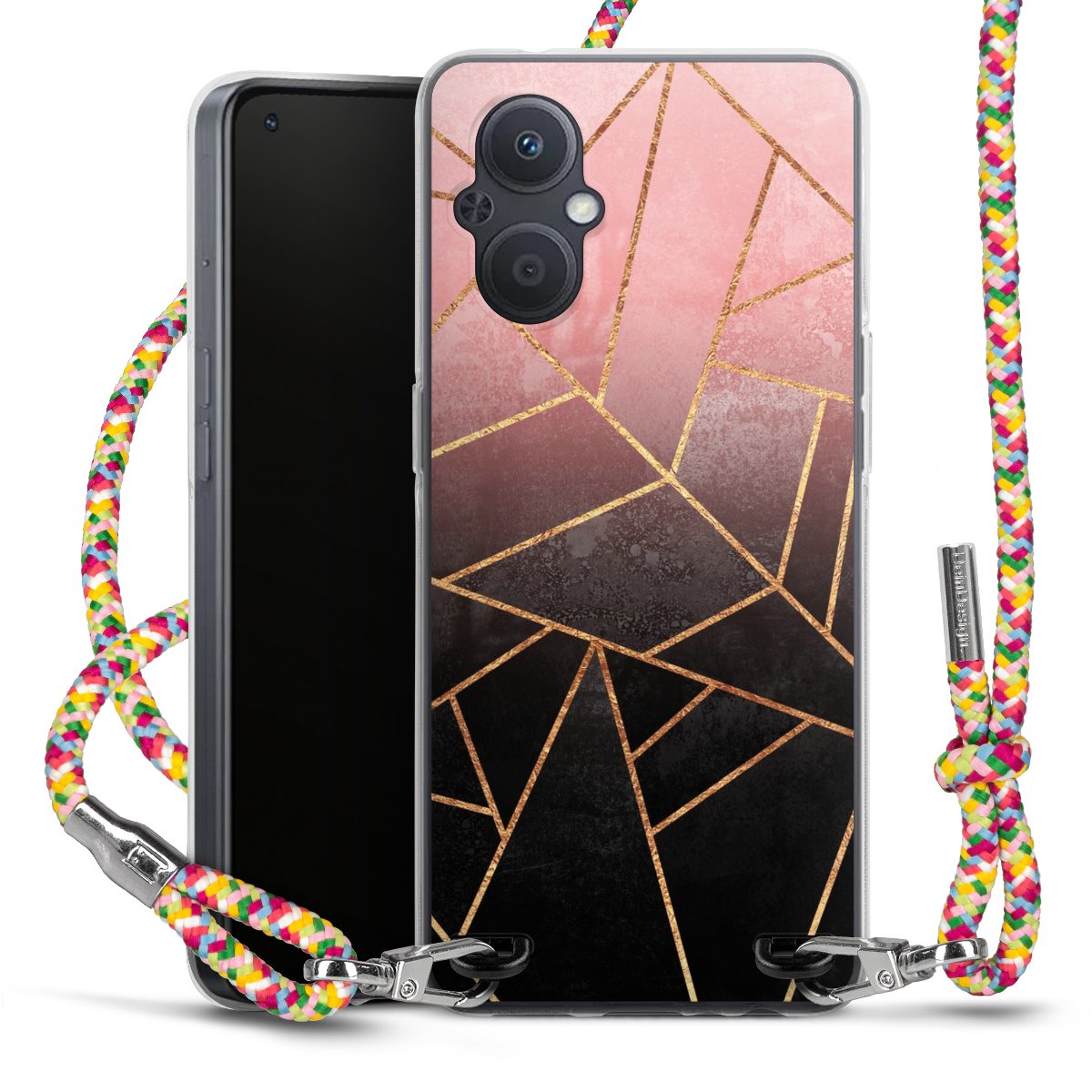 The flexible case is made from a highquality TPU material (thermoplastic Polyurethan). Thanks to its longlasting and break resistant characterisitcs, the case is flexible yet consistent in form and has a great grip and feel. The textile strap made from Polyester gives a chic yet casual accent allowing you to carry your phone like a bag or necklace - a practical gadget perfect for your next adventure. The textile strap is about 1.70 meters long and the length can easily be adjusted through the knots. Our Carry Case is available in Colourful, Mint-Camouflage, Very-Berry, Sahara-Sand and Sparkling-Neon. The ends of the textile strap are covered with metallic end caps to protect them against fraying.