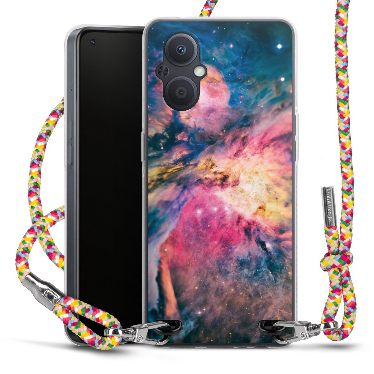 The flexible case is made from a highquality TPU material (thermoplastic Polyurethan). Thanks to its longlasting and break resistant characterisitcs, the case is flexible yet consistent in form and has a great grip and feel. The textile strap made from Polyester gives a chic yet casual accent allowing you to carry your phone like a bag or necklace - a practical gadget perfect for your next adventure. The textile strap is about 1.70 meters long and the length can easily be adjusted through the knots. Our Carry Case is available in Colourful, Mint-Camouflage, Very-Berry, Sahara-Sand and Sparkling-Neon. The ends of the textile strap are covered with metallic end caps to protect them against fraying.