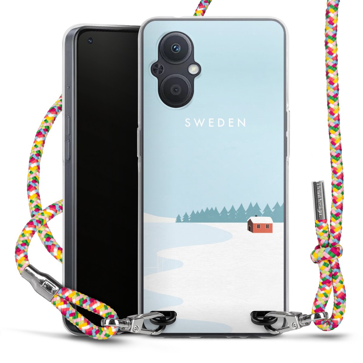 The flexible case is made from a highquality TPU material (thermoplastic Polyurethan). Thanks to its longlasting and break resistant characterisitcs, the case is flexible yet consistent in form and has a great grip and feel. The textile strap made from Polyester gives a chic yet casual accent allowing you to carry your phone like a bag or necklace - a practical gadget perfect for your next adventure. The textile strap is about 1.70 meters long and the length can easily be adjusted through the knots. Our Carry Case is available in Colourful, Mint-Camouflage, Very-Berry, Sahara-Sand and Sparkling-Neon. The ends of the textile strap are covered with metallic end caps to protect them against fraying.