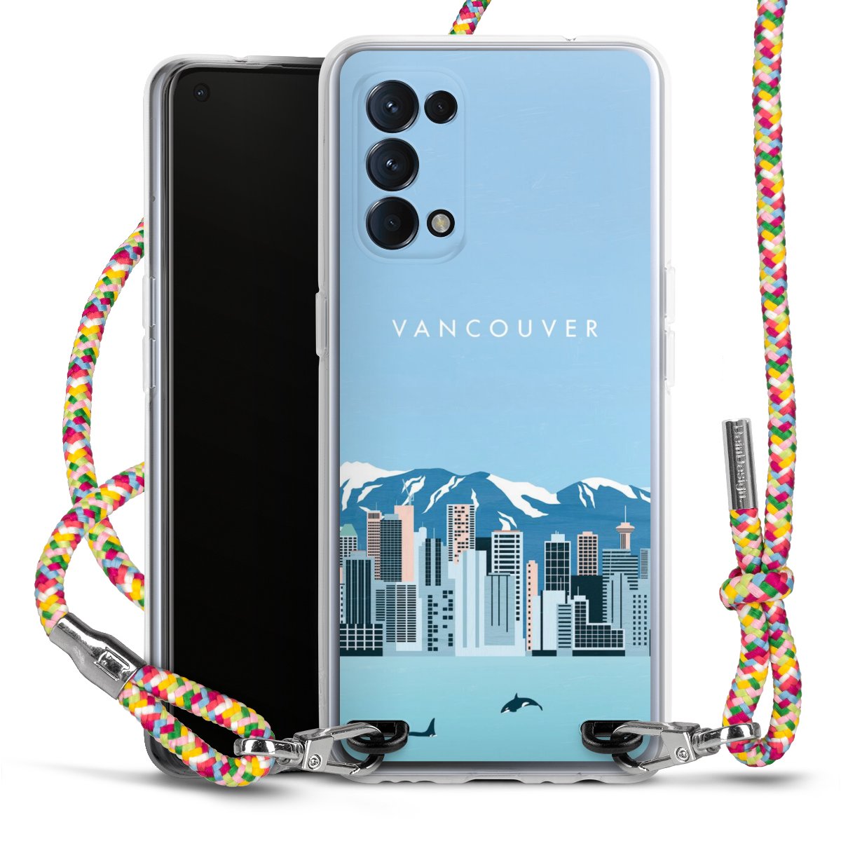 The flexible case is made from a highquality TPU material (thermoplastic Polyurethan). Thanks to its longlasting and break resistant characterisitcs, the case is flexible yet consistent in form and has a great grip and feel. The textile strap made from Polyester gives a chic yet casual accent allowing you to carry your phone like a bag or necklace - a practical gadget perfect for your next adventure. The textile strap is about 1.70 meters long and the length can easily be adjusted through the knots. Our Carry Case is available in Colourful, Mint-Camouflage, Very-Berry, Sahara-Sand and Sparkling-Neon. The ends of the textile strap are covered with metallic end caps to protect them against fraying.
