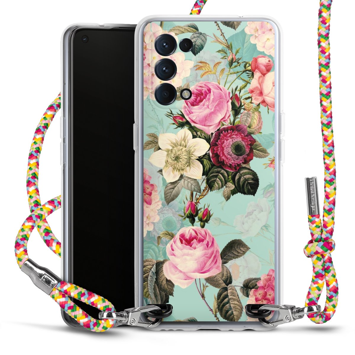 The flexible case is made from a highquality TPU material (thermoplastic Polyurethan). Thanks to its longlasting and break resistant characterisitcs, the case is flexible yet consistent in form and has a great grip and feel. The textile strap made from Polyester gives a chic yet casual accent allowing you to carry your phone like a bag or necklace - a practical gadget perfect for your next adventure. The textile strap is about 1.70 meters long and the length can easily be adjusted through the knots. Our Carry Case is available in Colourful, Mint-Camouflage, Very-Berry, Sahara-Sand and Sparkling-Neon. The ends of the textile strap are covered with metallic end caps to protect them against fraying.
