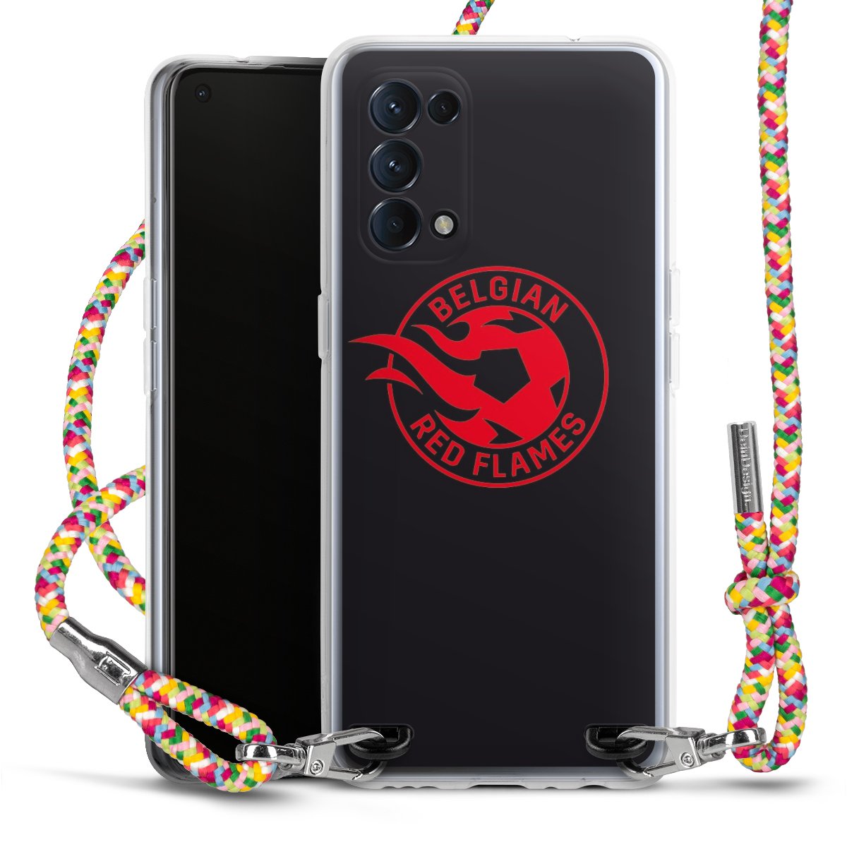 The flexible case is made from a highquality TPU material (thermoplastic Polyurethan). Thanks to its longlasting and break resistant characterisitcs, the case is flexible yet consistent in form and has a great grip and feel. The textile strap made from Polyester gives a chic yet casual accent allowing you to carry your phone like a bag or necklace - a practical gadget perfect for your next adventure. The textile strap is about 1.70 meters long and the length can easily be adjusted through the knots. Our Carry Case is available in Colourful, Mint-Camouflage, Very-Berry, Sahara-Sand and Sparkling-Neon. The ends of the textile strap are covered with metallic end caps to protect them against fraying.