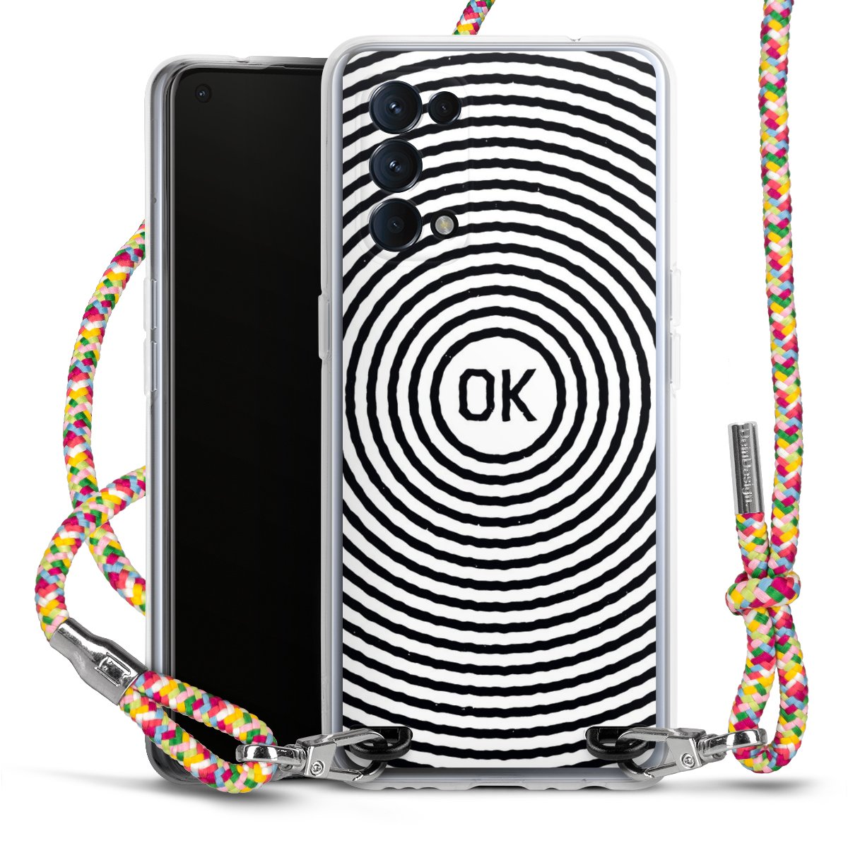 The flexible case is made from a highquality TPU material (thermoplastic Polyurethan). Thanks to its longlasting and break resistant characterisitcs, the case is flexible yet consistent in form and has a great grip and feel. The textile strap made from Polyester gives a chic yet casual accent allowing you to carry your phone like a bag or necklace - a practical gadget perfect for your next adventure. The textile strap is about 1.70 meters long and the length can easily be adjusted through the knots. Our Carry Case is available in Colourful, Mint-Camouflage, Very-Berry, Sahara-Sand and Sparkling-Neon. The ends of the textile strap are covered with metallic end caps to protect them against fraying.