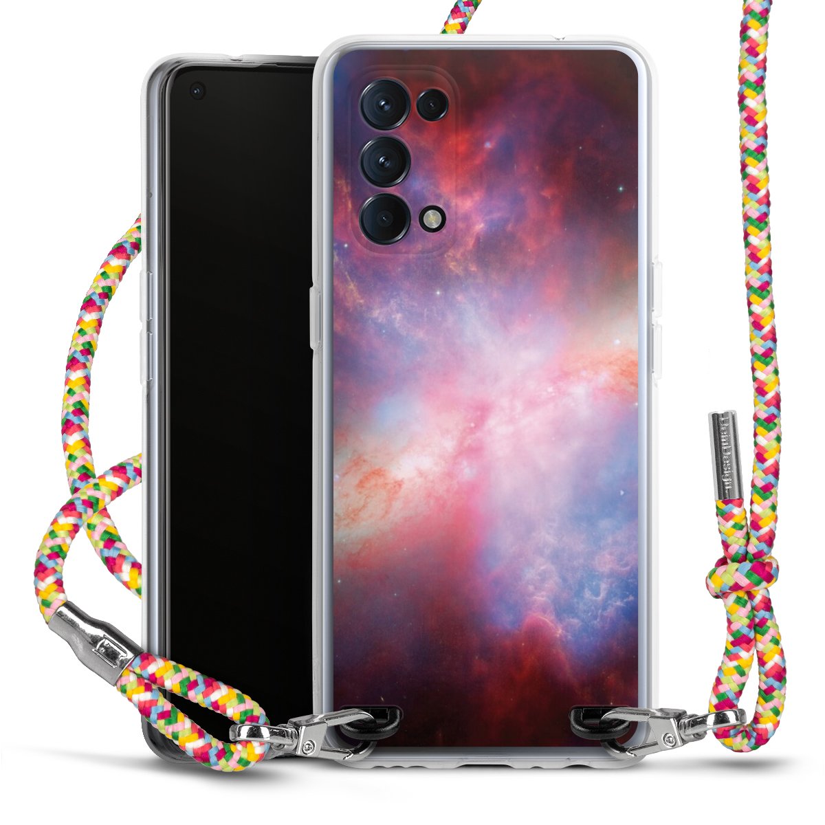 The flexible case is made from a highquality TPU material (thermoplastic Polyurethan). Thanks to its longlasting and break resistant characterisitcs, the case is flexible yet consistent in form and has a great grip and feel. The textile strap made from Polyester gives a chic yet casual accent allowing you to carry your phone like a bag or necklace - a practical gadget perfect for your next adventure. The textile strap is about 1.70 meters long and the length can easily be adjusted through the knots. Our Carry Case is available in Colourful, Mint-Camouflage, Very-Berry, Sahara-Sand and Sparkling-Neon. The ends of the textile strap are covered with metallic end caps to protect them against fraying.