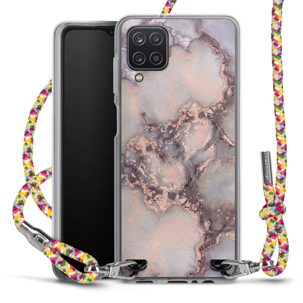 The flexible case is made from a highquality TPU material (thermoplastic Polyurethan). Thanks to its longlasting and break resistant characterisitcs, the case is flexible yet consistent in form and has a great grip and feel. The textile strap made from Polyester gives a chic yet casual accent allowing you to carry your phone like a bag or necklace - a practical gadget perfect for your next adventure. The textile strap is about 1.70 meters long and the length can easily be adjusted through the knots. Our Carry Case is available in Colourful, Mint-Camouflage, Very-Berry, Sahara-Sand and Sparkling-Neon. The ends of the textile strap are covered with metallic end caps to protect them against fraying.