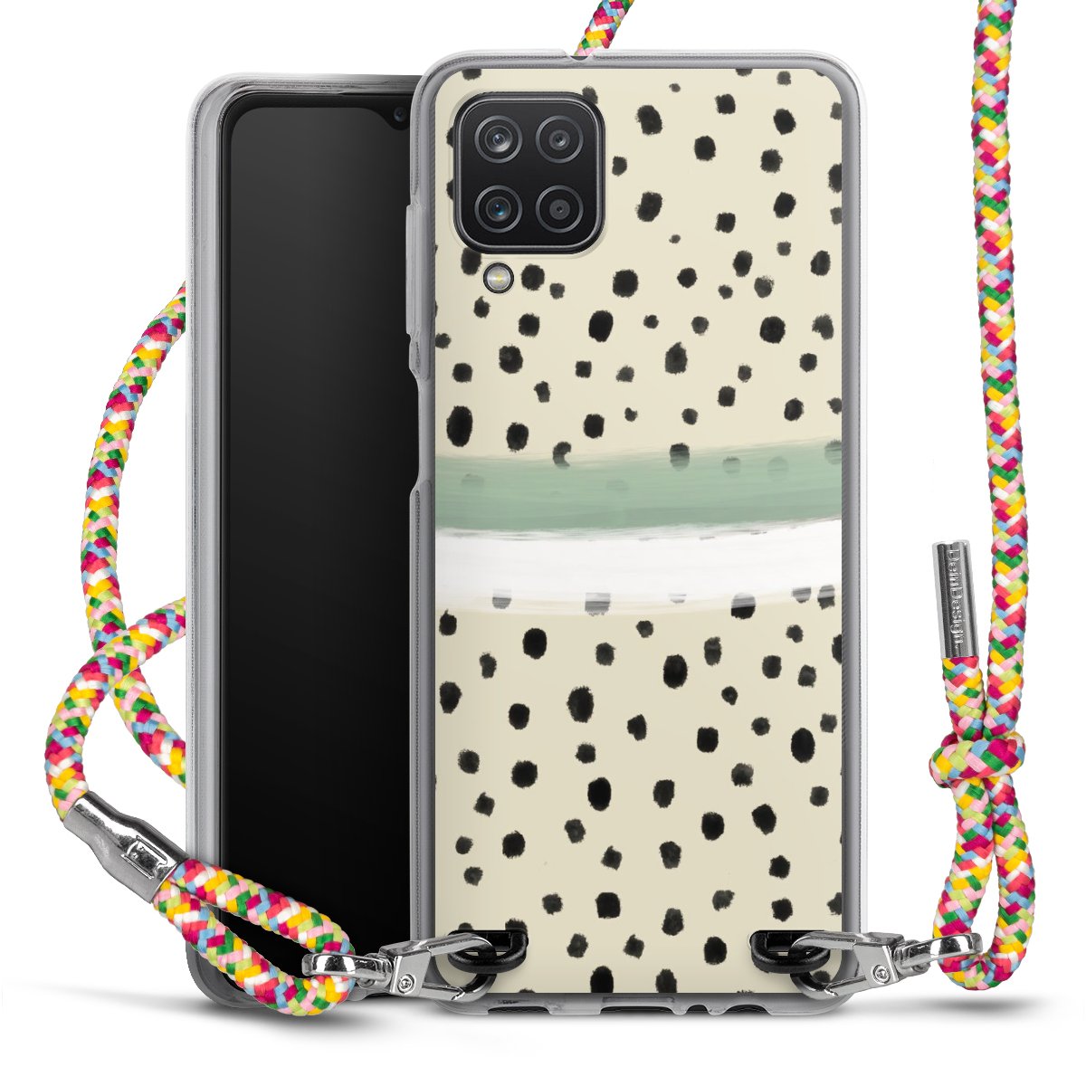 The flexible case is made from a highquality TPU material (thermoplastic Polyurethan). Thanks to its longlasting and break resistant characterisitcs, the case is flexible yet consistent in form and has a great grip and feel. The textile strap made from Polyester gives a chic yet casual accent allowing you to carry your phone like a bag or necklace - a practical gadget perfect for your next adventure. The textile strap is about 1.70 meters long and the length can easily be adjusted through the knots. Our Carry Case is available in Colourful, Mint-Camouflage, Very-Berry, Sahara-Sand and Sparkling-Neon. The ends of the textile strap are covered with metallic end caps to protect them against fraying.