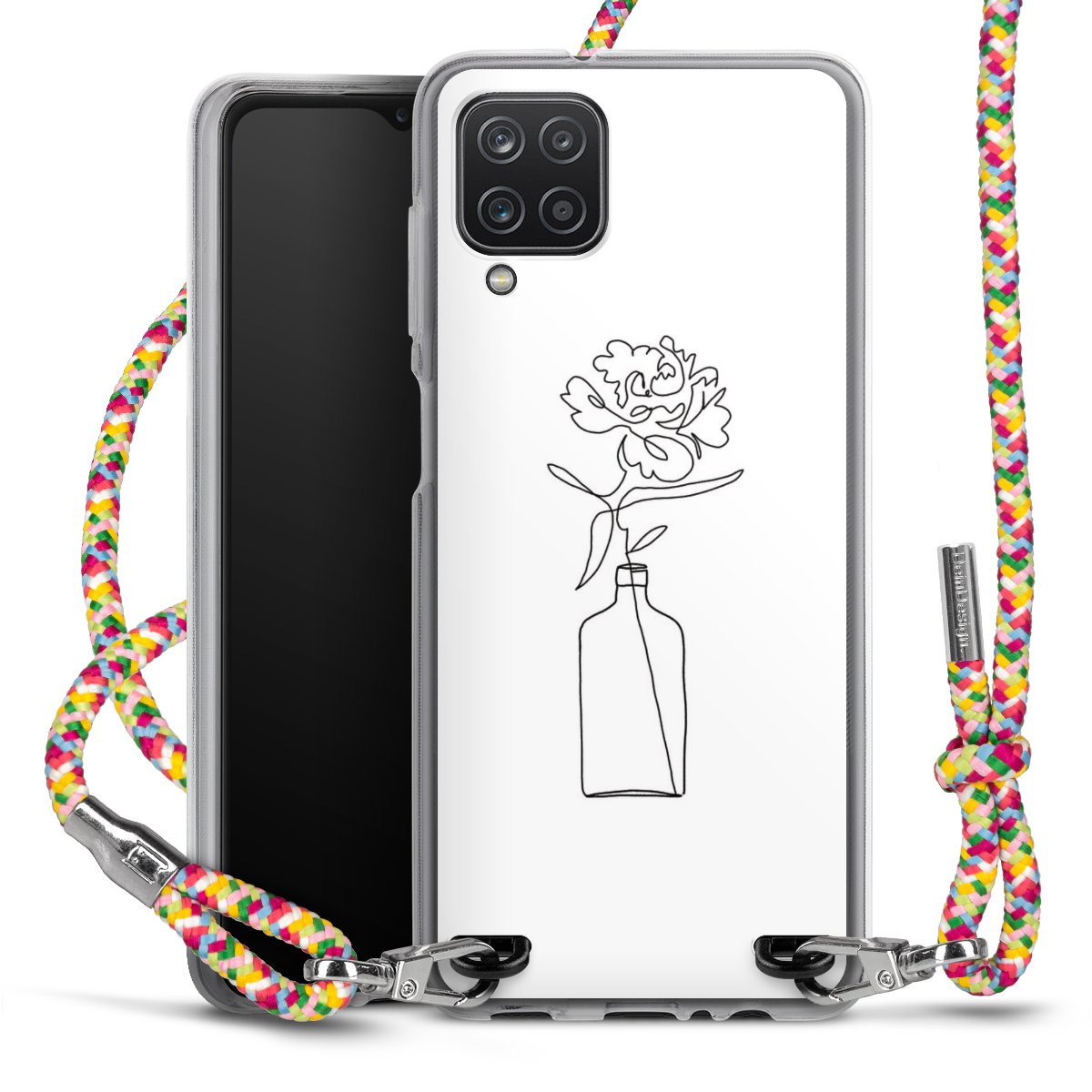 The flexible case is made from a highquality TPU material (thermoplastic Polyurethan). Thanks to its longlasting and break resistant characterisitcs, the case is flexible yet consistent in form and has a great grip and feel. The textile strap made from Polyester gives a chic yet casual accent allowing you to carry your phone like a bag or necklace - a practical gadget perfect for your next adventure. The textile strap is about 1.70 meters long and the length can easily be adjusted through the knots. Our Carry Case is available in Colourful, Mint-Camouflage, Very-Berry, Sahara-Sand and Sparkling-Neon. The ends of the textile strap are covered with metallic end caps to protect them against fraying.