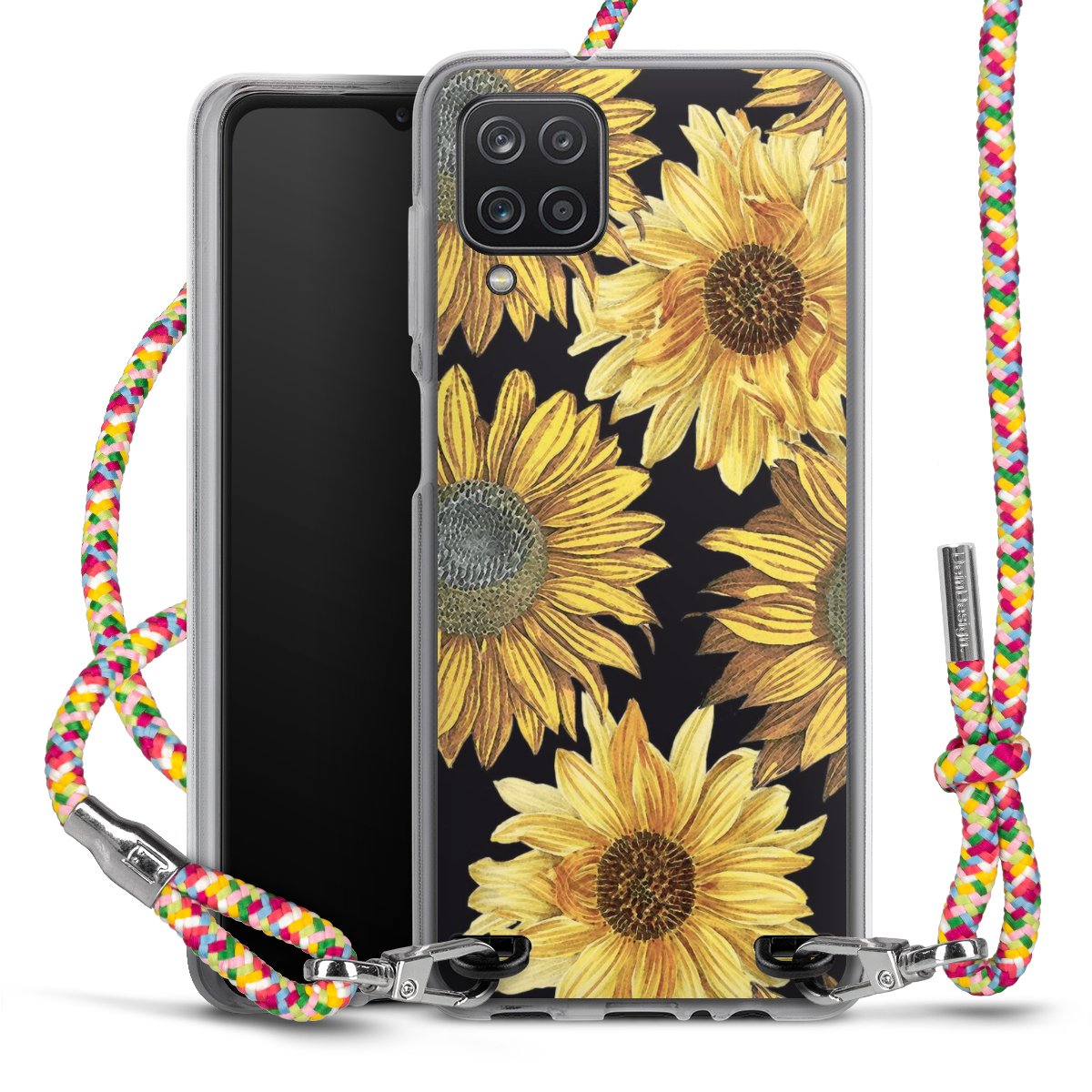 The flexible case is made from a highquality TPU material (thermoplastic Polyurethan). Thanks to its longlasting and break resistant characterisitcs, the case is flexible yet consistent in form and has a great grip and feel. The textile strap made from Polyester gives a chic yet casual accent allowing you to carry your phone like a bag or necklace - a practical gadget perfect for your next adventure. The textile strap is about 1.70 meters long and the length can easily be adjusted through the knots. Our Carry Case is available in Colourful, Mint-Camouflage, Very-Berry, Sahara-Sand and Sparkling-Neon. The ends of the textile strap are covered with metallic end caps to protect them against fraying.