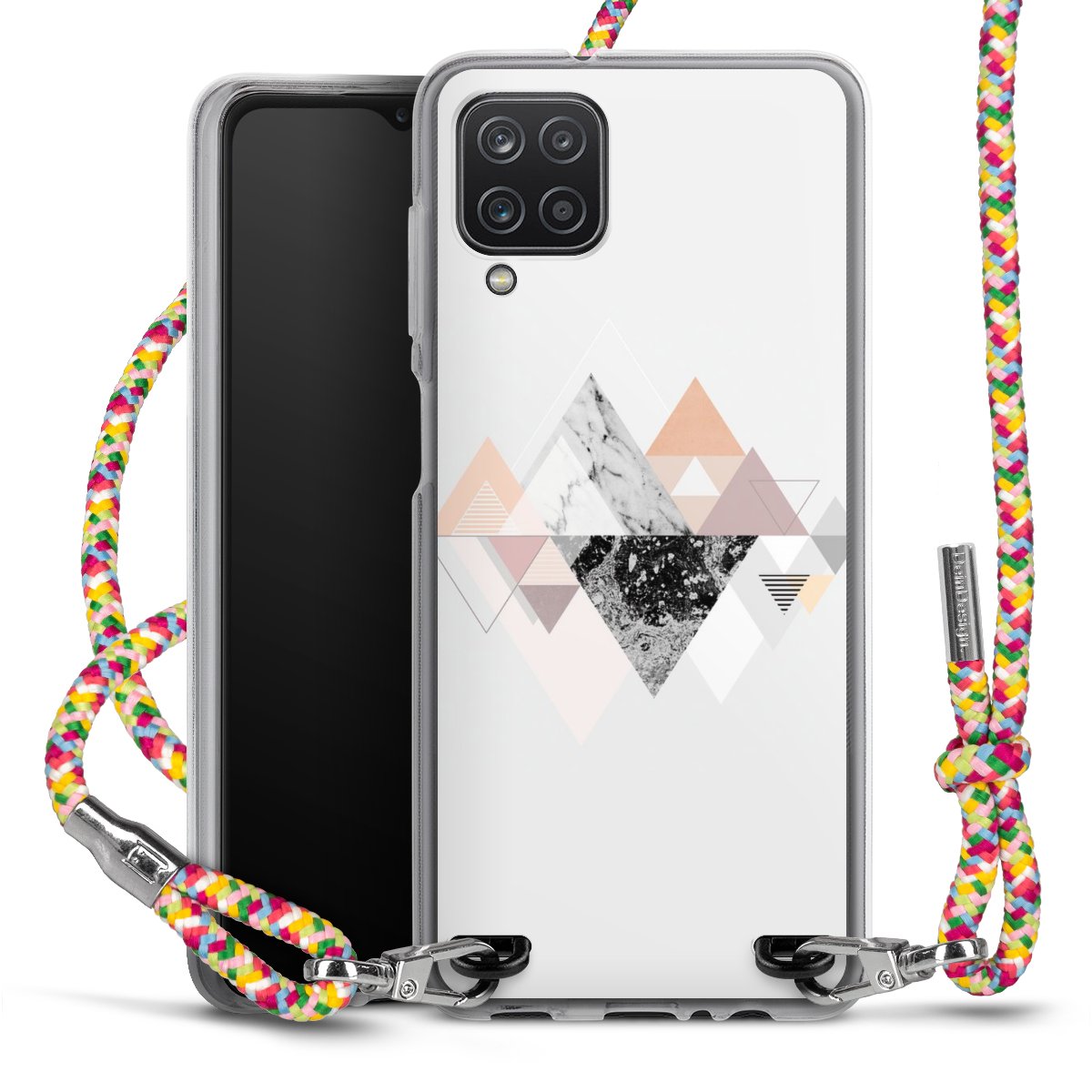 The flexible case is made from a highquality TPU material (thermoplastic Polyurethan). Thanks to its longlasting and break resistant characterisitcs, the case is flexible yet consistent in form and has a great grip and feel. The textile strap made from Polyester gives a chic yet casual accent allowing you to carry your phone like a bag or necklace - a practical gadget perfect for your next adventure. The textile strap is about 1.70 meters long and the length can easily be adjusted through the knots. Our Carry Case is available in Colourful, Mint-Camouflage, Very-Berry, Sahara-Sand and Sparkling-Neon. The ends of the textile strap are covered with metallic end caps to protect them against fraying.