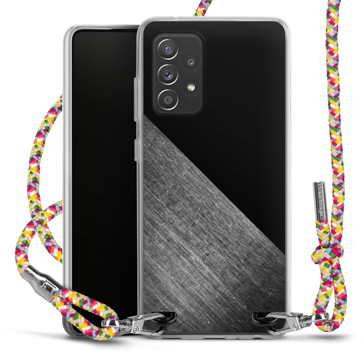 The flexible case is made from a highquality TPU material (thermoplastic Polyurethan). Thanks to its longlasting and break resistant characterisitcs, the case is flexible yet consistent in form and has a great grip and feel. The textile strap made from Polyester gives a chic yet casual accent allowing you to carry your phone like a bag or necklace - a practical gadget perfect for your next adventure. The textile strap is about 1.70 meters long and the length can easily be adjusted through the knots. Our Carry Case is available in Colourful, Mint-Camouflage, Very-Berry, Sahara-Sand and Sparkling-Neon. The ends of the textile strap are covered with metallic end caps to protect them against fraying.