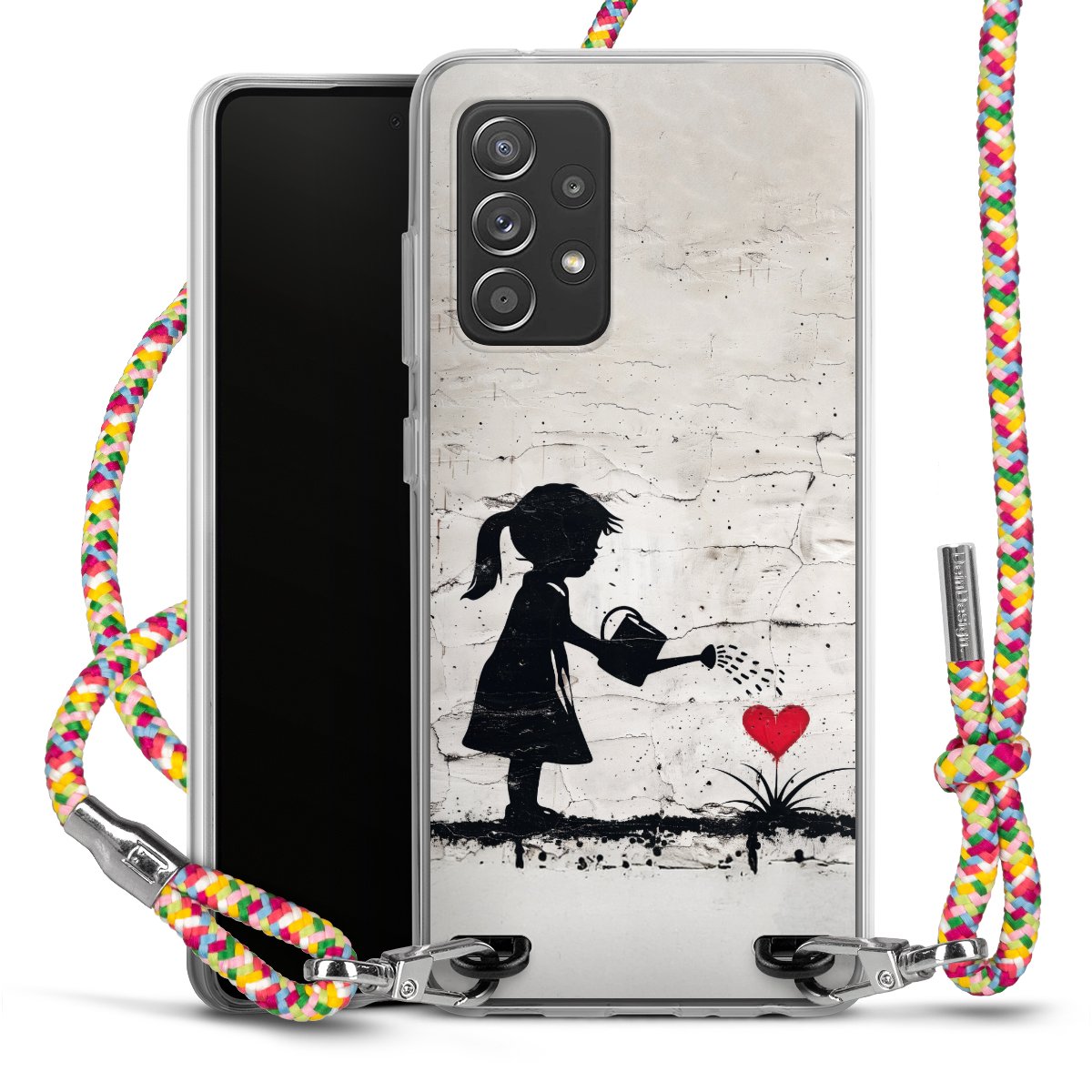 The flexible case is made from a highquality TPU material (thermoplastic Polyurethan). Thanks to its longlasting and break resistant characterisitcs, the case is flexible yet consistent in form and has a great grip and feel. The textile strap made from Polyester gives a chic yet casual accent allowing you to carry your phone like a bag or necklace - a practical gadget perfect for your next adventure. The textile strap is about 1.70 meters long and the length can easily be adjusted through the knots. Our Carry Case is available in Colourful, Mint-Camouflage, Very-Berry, Sahara-Sand and Sparkling-Neon. The ends of the textile strap are covered with metallic end caps to protect them against fraying.