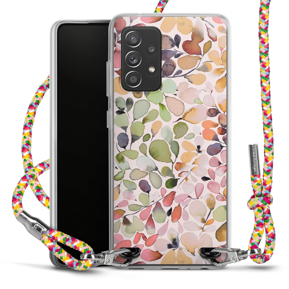 The flexible case is made from a highquality TPU material (thermoplastic Polyurethan). Thanks to its longlasting and break resistant characterisitcs, the case is flexible yet consistent in form and has a great grip and feel. The textile strap made from Polyester gives a chic yet casual accent allowing you to carry your phone like a bag or necklace - a practical gadget perfect for your next adventure. The textile strap is about 1.70 meters long and the length can easily be adjusted through the knots. Our Carry Case is available in Colourful, Mint-Camouflage, Very-Berry, Sahara-Sand and Sparkling-Neon. The ends of the textile strap are covered with metallic end caps to protect them against fraying.