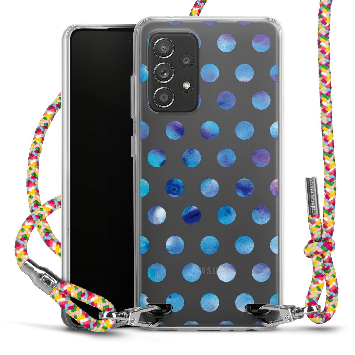 The flexible case is made from a highquality TPU material (thermoplastic Polyurethan). Thanks to its longlasting and break resistant characterisitcs, the case is flexible yet consistent in form and has a great grip and feel. The textile strap made from Polyester gives a chic yet casual accent allowing you to carry your phone like a bag or necklace - a practical gadget perfect for your next adventure. The textile strap is about 1.70 meters long and the length can easily be adjusted through the knots. Our Carry Case is available in Colourful, Mint-Camouflage, Very-Berry, Sahara-Sand and Sparkling-Neon. The ends of the textile strap are covered with metallic end caps to protect them against fraying.