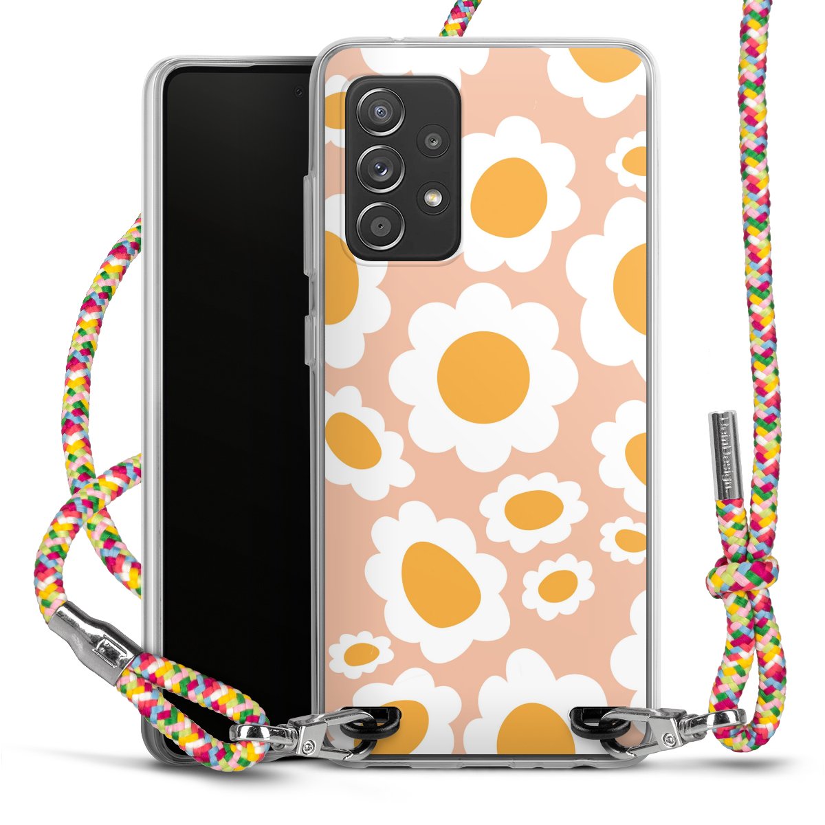 The flexible case is made from a highquality TPU material (thermoplastic Polyurethan). Thanks to its longlasting and break resistant characterisitcs, the case is flexible yet consistent in form and has a great grip and feel. The textile strap made from Polyester gives a chic yet casual accent allowing you to carry your phone like a bag or necklace - a practical gadget perfect for your next adventure. The textile strap is about 1.70 meters long and the length can easily be adjusted through the knots. Our Carry Case is available in Colourful, Mint-Camouflage, Very-Berry, Sahara-Sand and Sparkling-Neon. The ends of the textile strap are covered with metallic end caps to protect them against fraying.