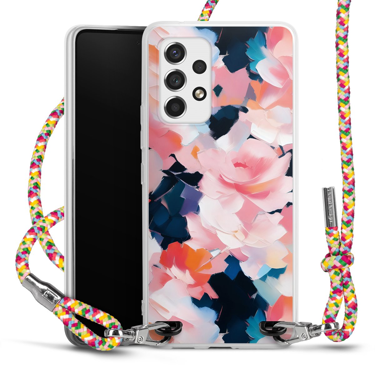 The flexible case is made from a highquality TPU material (thermoplastic Polyurethan). Thanks to its longlasting and break resistant characterisitcs, the case is flexible yet consistent in form and has a great grip and feel. The textile strap made from Polyester gives a chic yet casual accent allowing you to carry your phone like a bag or necklace - a practical gadget perfect for your next adventure. The textile strap is about 1.70 meters long and the length can easily be adjusted through the knots. Our Carry Case is available in Colourful, Mint-Camouflage, Very-Berry, Sahara-Sand and Sparkling-Neon. The ends of the textile strap are covered with metallic end caps to protect them against fraying.