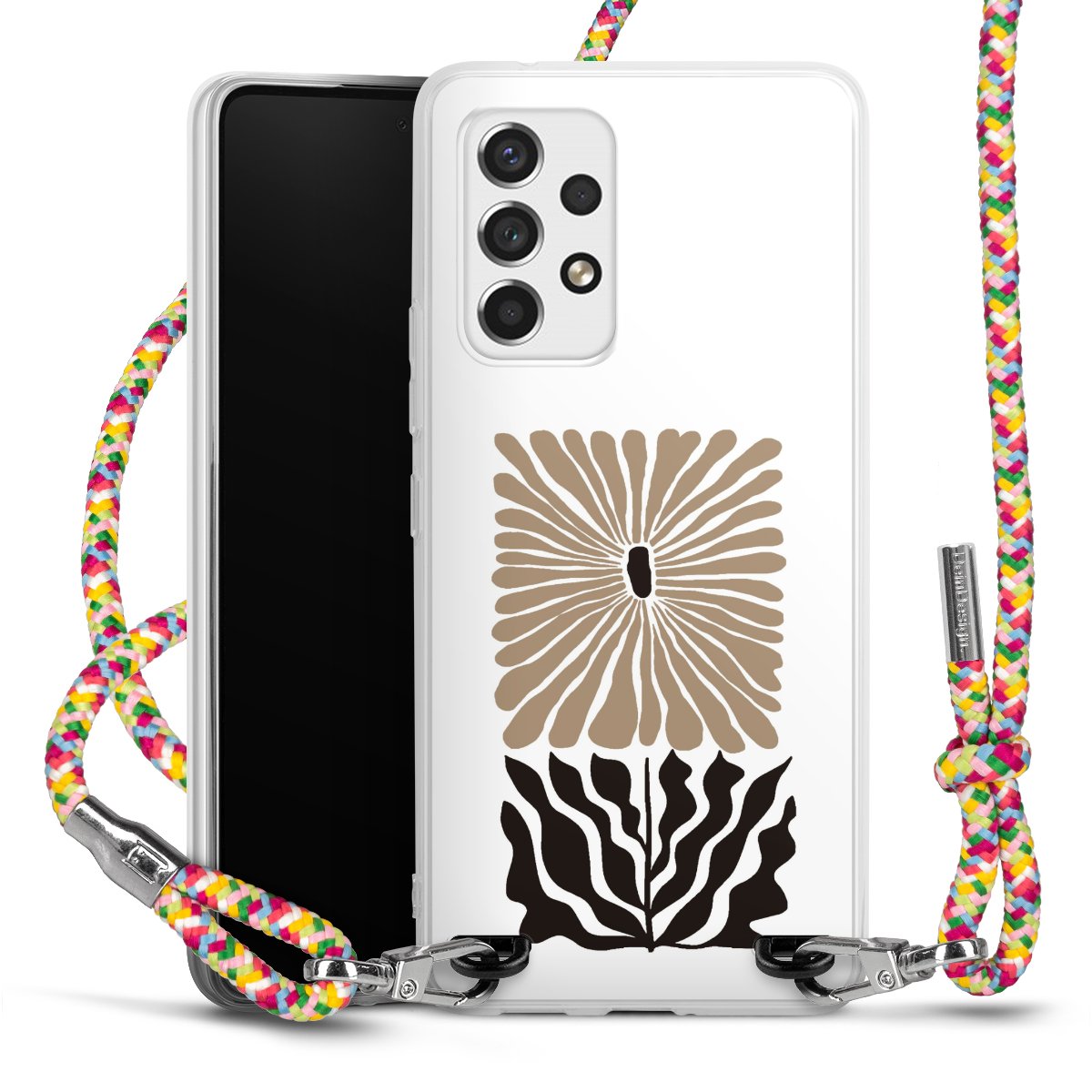 The flexible case is made from a highquality TPU material (thermoplastic Polyurethan). Thanks to its longlasting and break resistant characterisitcs, the case is flexible yet consistent in form and has a great grip and feel. The textile strap made from Polyester gives a chic yet casual accent allowing you to carry your phone like a bag or necklace - a practical gadget perfect for your next adventure. The textile strap is about 1.70 meters long and the length can easily be adjusted through the knots. Our Carry Case is available in Colourful, Mint-Camouflage, Very-Berry, Sahara-Sand and Sparkling-Neon. The ends of the textile strap are covered with metallic end caps to protect them against fraying.
