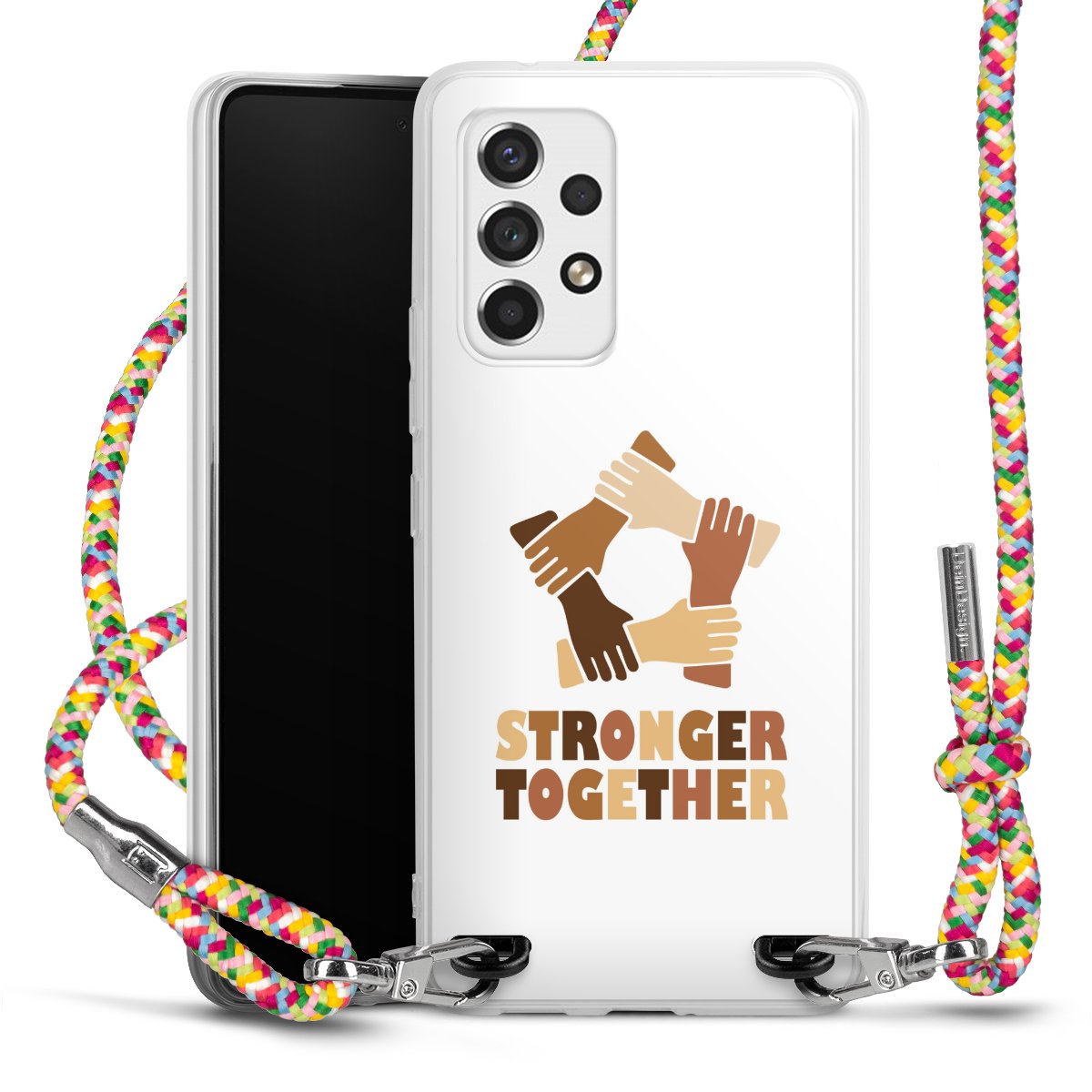 The flexible case is made from a highquality TPU material (thermoplastic Polyurethan). Thanks to its longlasting and break resistant characterisitcs, the case is flexible yet consistent in form and has a great grip and feel. The textile strap made from Polyester gives a chic yet casual accent allowing you to carry your phone like a bag or necklace - a practical gadget perfect for your next adventure. The textile strap is about 1.70 meters long and the length can easily be adjusted through the knots. Our Carry Case is available in Colourful, Mint-Camouflage, Very-Berry, Sahara-Sand and Sparkling-Neon. The ends of the textile strap are covered with metallic end caps to protect them against fraying.