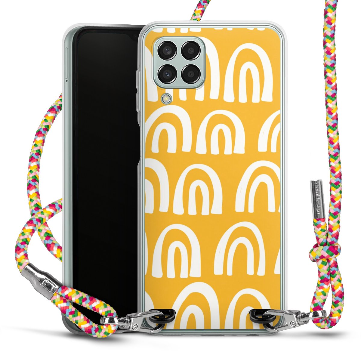 The flexible case is made from a highquality TPU material (thermoplastic Polyurethan). Thanks to its longlasting and break resistant characterisitcs, the case is flexible yet consistent in form and has a great grip and feel. The textile strap made from Polyester gives a chic yet casual accent allowing you to carry your phone like a bag or necklace - a practical gadget perfect for your next adventure. The textile strap is about 1.70 meters long and the length can easily be adjusted through the knots. Our Carry Case is available in Colourful, Mint-Camouflage, Very-Berry, Sahara-Sand and Sparkling-Neon. The ends of the textile strap are covered with metallic end caps to protect them against fraying.