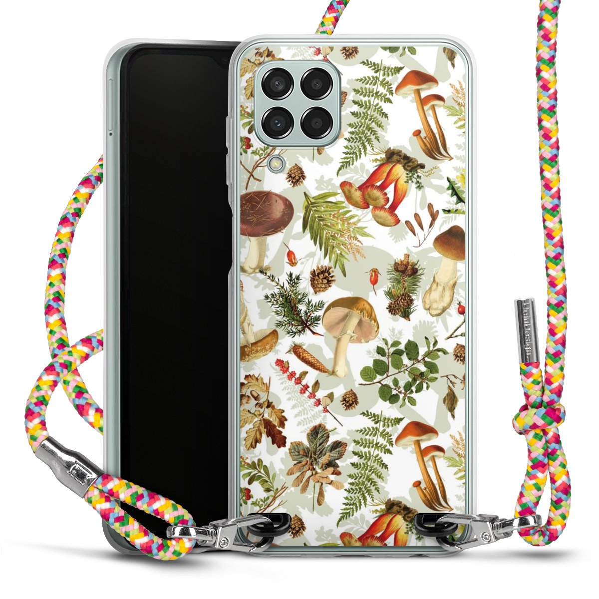 The flexible case is made from a highquality TPU material (thermoplastic Polyurethan). Thanks to its longlasting and break resistant characterisitcs, the case is flexible yet consistent in form and has a great grip and feel. The textile strap made from Polyester gives a chic yet casual accent allowing you to carry your phone like a bag or necklace - a practical gadget perfect for your next adventure. The textile strap is about 1.70 meters long and the length can easily be adjusted through the knots. Our Carry Case is available in Colourful, Mint-Camouflage, Very-Berry, Sahara-Sand and Sparkling-Neon. The ends of the textile strap are covered with metallic end caps to protect them against fraying.