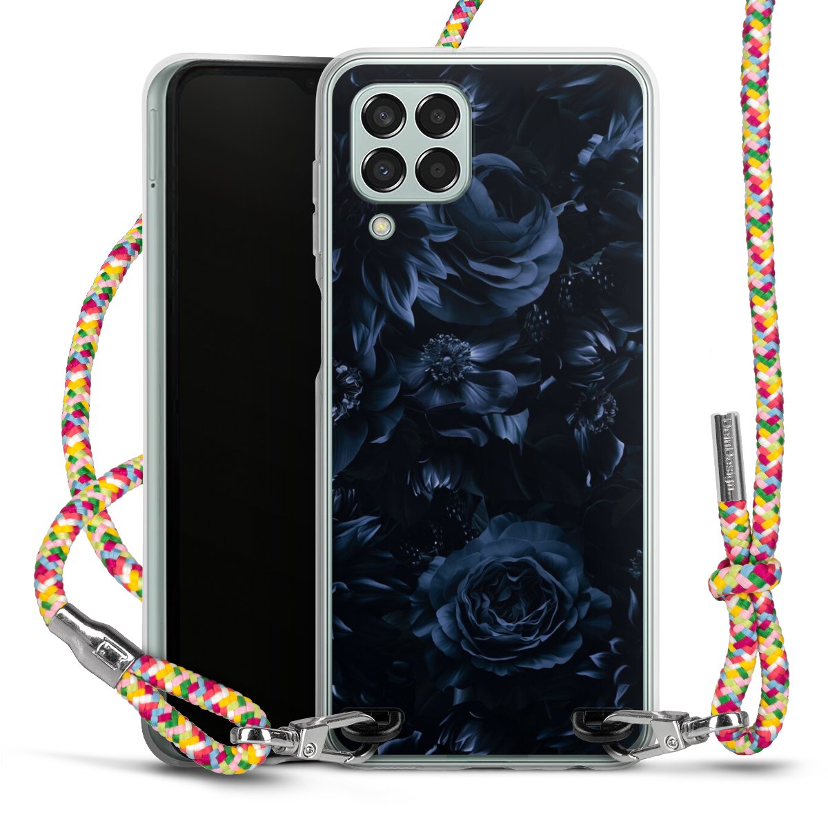 The flexible case is made from a highquality TPU material (thermoplastic Polyurethan). Thanks to its longlasting and break resistant characterisitcs, the case is flexible yet consistent in form and has a great grip and feel. The textile strap made from Polyester gives a chic yet casual accent allowing you to carry your phone like a bag or necklace - a practical gadget perfect for your next adventure. The textile strap is about 1.70 meters long and the length can easily be adjusted through the knots. Our Carry Case is available in Colourful, Mint-Camouflage, Very-Berry, Sahara-Sand and Sparkling-Neon. The ends of the textile strap are covered with metallic end caps to protect them against fraying.