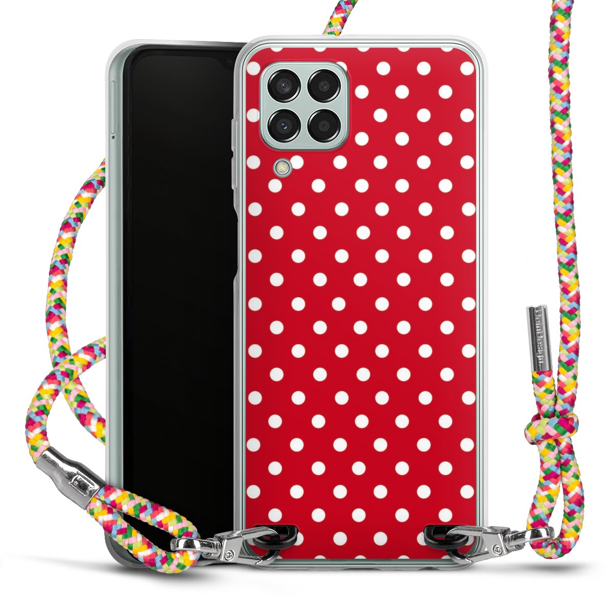The flexible case is made from a highquality TPU material (thermoplastic Polyurethan). Thanks to its longlasting and break resistant characterisitcs, the case is flexible yet consistent in form and has a great grip and feel. The textile strap made from Polyester gives a chic yet casual accent allowing you to carry your phone like a bag or necklace - a practical gadget perfect for your next adventure. The textile strap is about 1.70 meters long and the length can easily be adjusted through the knots. Our Carry Case is available in Colourful, Mint-Camouflage, Very-Berry, Sahara-Sand and Sparkling-Neon. The ends of the textile strap are covered with metallic end caps to protect them against fraying.