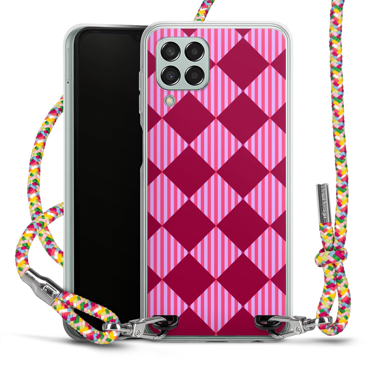 The flexible case is made from a highquality TPU material (thermoplastic Polyurethan). Thanks to its longlasting and break resistant characterisitcs, the case is flexible yet consistent in form and has a great grip and feel. The textile strap made from Polyester gives a chic yet casual accent allowing you to carry your phone like a bag or necklace - a practical gadget perfect for your next adventure. The textile strap is about 1.70 meters long and the length can easily be adjusted through the knots. Our Carry Case is available in Colourful, Mint-Camouflage, Very-Berry, Sahara-Sand and Sparkling-Neon. The ends of the textile strap are covered with metallic end caps to protect them against fraying.