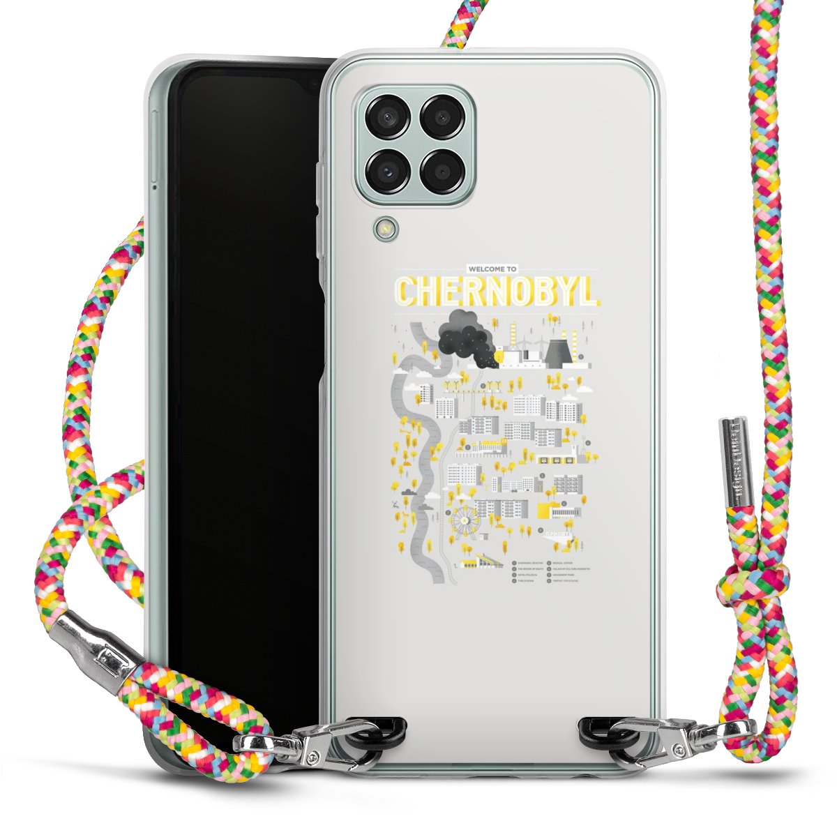 The flexible case is made from a highquality TPU material (thermoplastic Polyurethan). Thanks to its longlasting and break resistant characterisitcs, the case is flexible yet consistent in form and has a great grip and feel. The textile strap made from Polyester gives a chic yet casual accent allowing you to carry your phone like a bag or necklace - a practical gadget perfect for your next adventure. The textile strap is about 1.70 meters long and the length can easily be adjusted through the knots. Our Carry Case is available in Colourful, Mint-Camouflage, Very-Berry, Sahara-Sand and Sparkling-Neon. The ends of the textile strap are covered with metallic end caps to protect them against fraying.