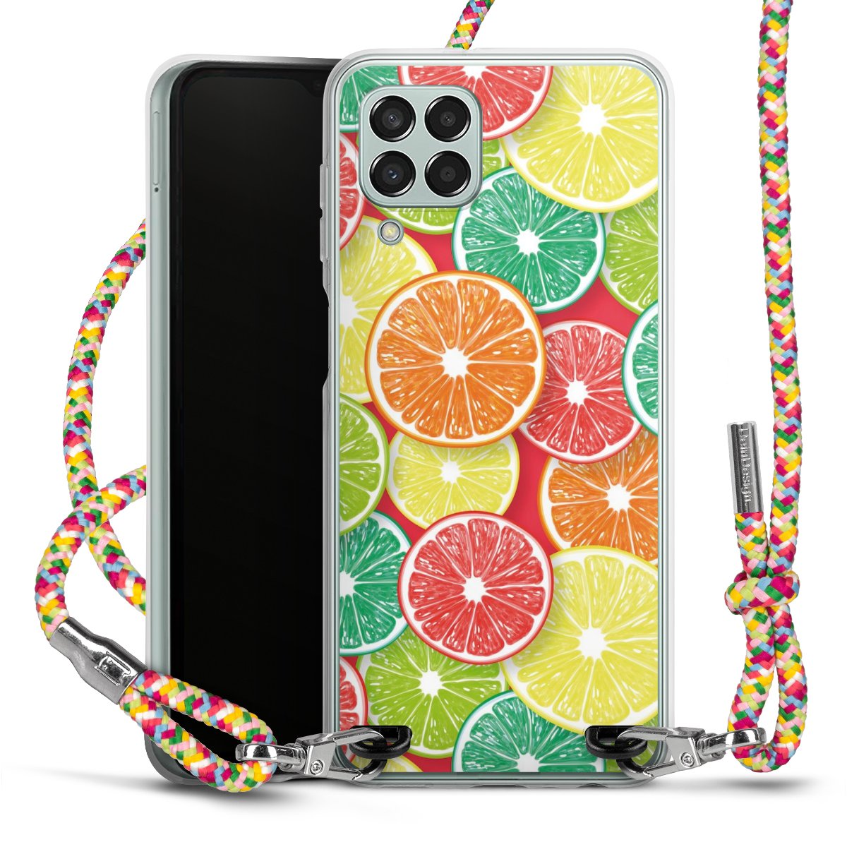 The flexible case is made from a highquality TPU material (thermoplastic Polyurethan). Thanks to its longlasting and break resistant characterisitcs, the case is flexible yet consistent in form and has a great grip and feel. The textile strap made from Polyester gives a chic yet casual accent allowing you to carry your phone like a bag or necklace - a practical gadget perfect for your next adventure. The textile strap is about 1.70 meters long and the length can easily be adjusted through the knots. Our Carry Case is available in Colourful, Mint-Camouflage, Very-Berry, Sahara-Sand and Sparkling-Neon. The ends of the textile strap are covered with metallic end caps to protect them against fraying.