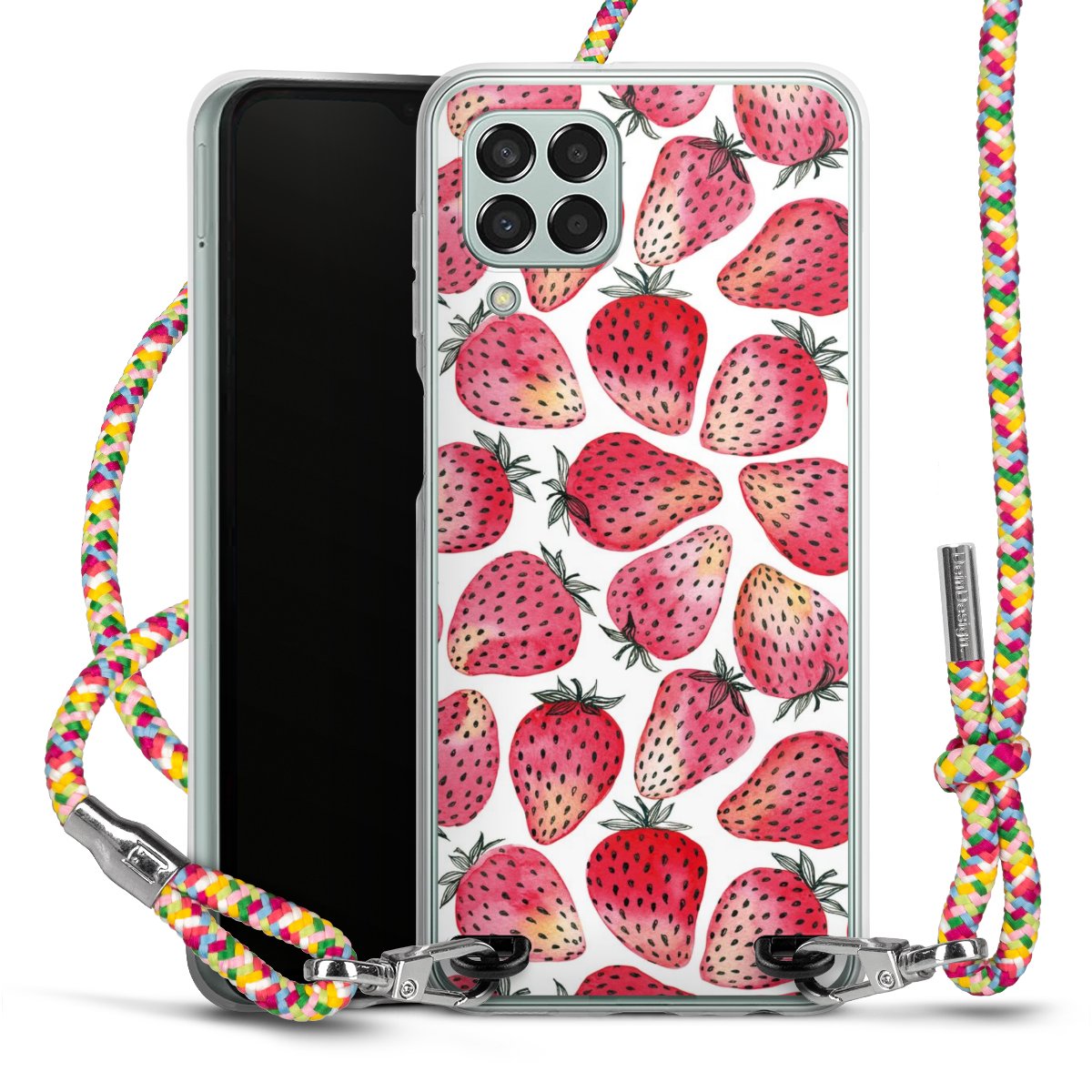 The flexible case is made from a highquality TPU material (thermoplastic Polyurethan). Thanks to its longlasting and break resistant characterisitcs, the case is flexible yet consistent in form and has a great grip and feel. The textile strap made from Polyester gives a chic yet casual accent allowing you to carry your phone like a bag or necklace - a practical gadget perfect for your next adventure. The textile strap is about 1.70 meters long and the length can easily be adjusted through the knots. Our Carry Case is available in Colourful, Mint-Camouflage, Very-Berry, Sahara-Sand and Sparkling-Neon. The ends of the textile strap are covered with metallic end caps to protect them against fraying.