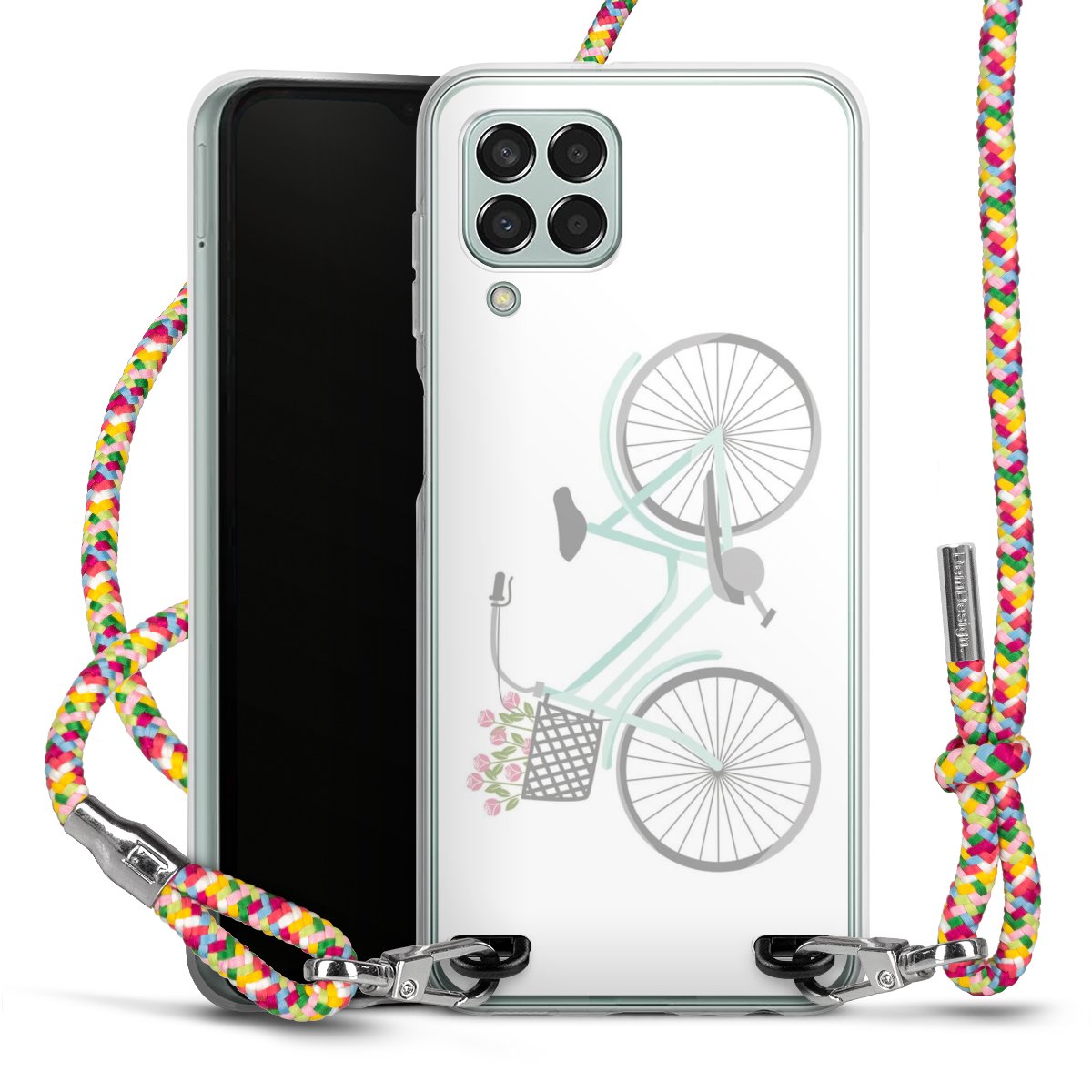 The flexible case is made from a highquality TPU material (thermoplastic Polyurethan). Thanks to its longlasting and break resistant characterisitcs, the case is flexible yet consistent in form and has a great grip and feel. The textile strap made from Polyester gives a chic yet casual accent allowing you to carry your phone like a bag or necklace - a practical gadget perfect for your next adventure. The textile strap is about 1.70 meters long and the length can easily be adjusted through the knots. Our Carry Case is available in Colourful, Mint-Camouflage, Very-Berry, Sahara-Sand and Sparkling-Neon. The ends of the textile strap are covered with metallic end caps to protect them against fraying.
