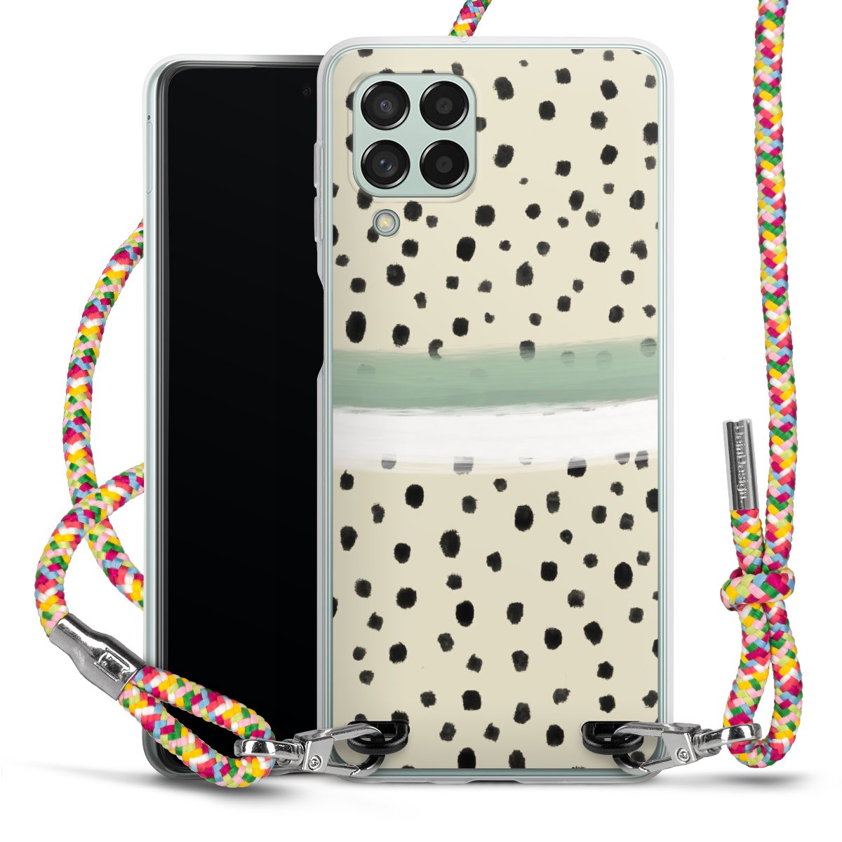 The flexible case is made from a highquality TPU material (thermoplastic Polyurethan). Thanks to its longlasting and break resistant characterisitcs, the case is flexible yet consistent in form and has a great grip and feel. The textile strap made from Polyester gives a chic yet casual accent allowing you to carry your phone like a bag or necklace - a practical gadget perfect for your next adventure. The textile strap is about 1.70 meters long and the length can easily be adjusted through the knots. Our Carry Case is available in Colourful, Mint-Camouflage, Very-Berry, Sahara-Sand and Sparkling-Neon. The ends of the textile strap are covered with metallic end caps to protect them against fraying.