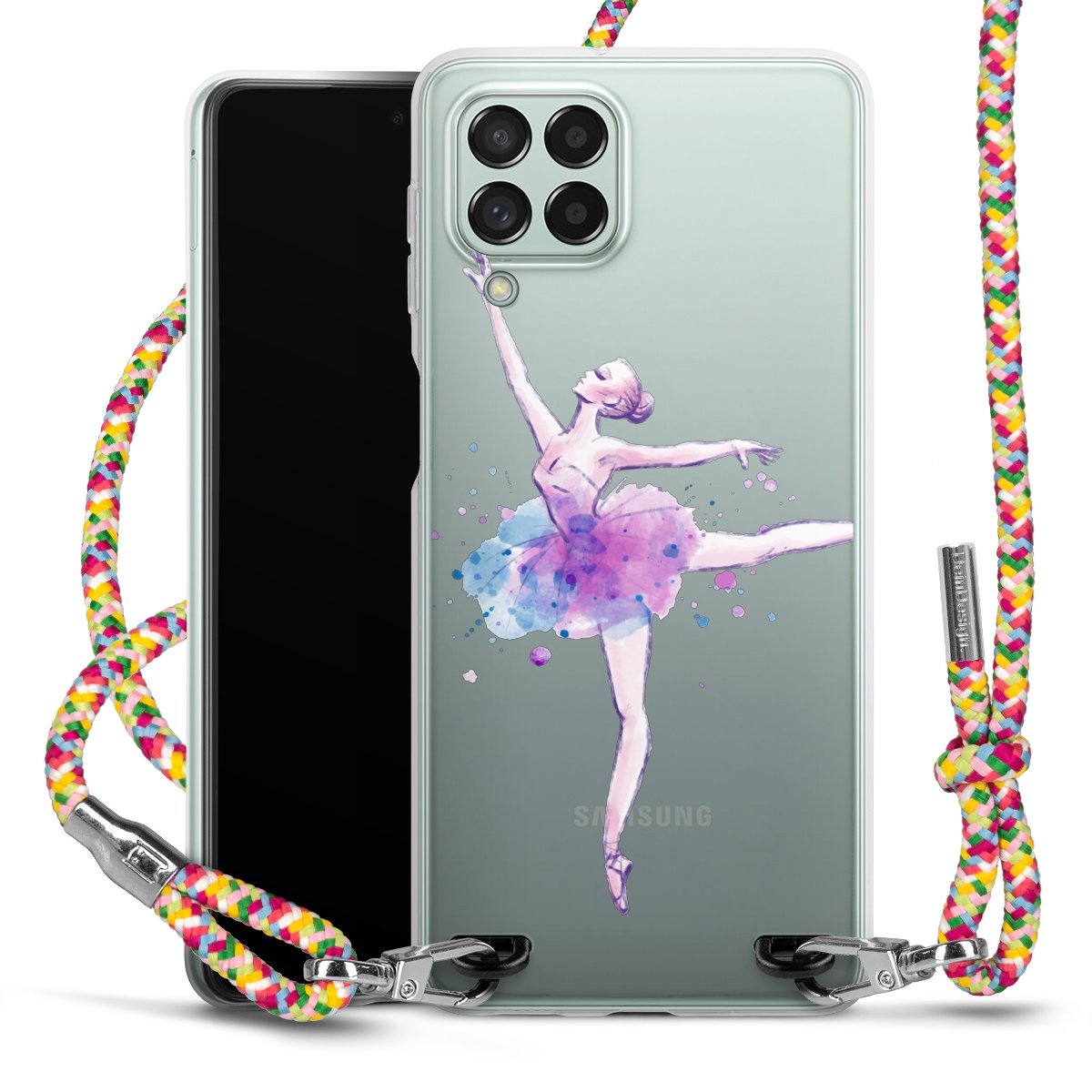 The flexible case is made from a highquality TPU material (thermoplastic Polyurethan). Thanks to its longlasting and break resistant characterisitcs, the case is flexible yet consistent in form and has a great grip and feel. The textile strap made from Polyester gives a chic yet casual accent allowing you to carry your phone like a bag or necklace - a practical gadget perfect for your next adventure. The textile strap is about 1.70 meters long and the length can easily be adjusted through the knots. Our Carry Case is available in Colourful, Mint-Camouflage, Very-Berry, Sahara-Sand and Sparkling-Neon. The ends of the textile strap are covered with metallic end caps to protect them against fraying.