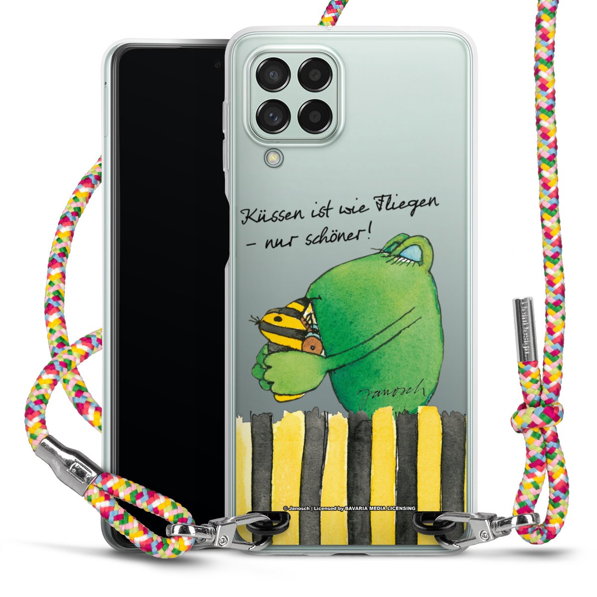 The flexible case is made from a highquality TPU material (thermoplastic Polyurethan). Thanks to its longlasting and break resistant characterisitcs, the case is flexible yet consistent in form and has a great grip and feel. The textile strap made from Polyester gives a chic yet casual accent allowing you to carry your phone like a bag or necklace - a practical gadget perfect for your next adventure. The textile strap is about 1.70 meters long and the length can easily be adjusted through the knots. Our Carry Case is available in Colourful, Mint-Camouflage, Very-Berry, Sahara-Sand and Sparkling-Neon. The ends of the textile strap are covered with metallic end caps to protect them against fraying.