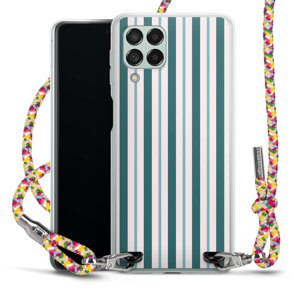 The flexible case is made from a highquality TPU material (thermoplastic Polyurethan). Thanks to its longlasting and break resistant characterisitcs, the case is flexible yet consistent in form and has a great grip and feel. The textile strap made from Polyester gives a chic yet casual accent allowing you to carry your phone like a bag or necklace - a practical gadget perfect for your next adventure. The textile strap is about 1.70 meters long and the length can easily be adjusted through the knots. Our Carry Case is available in Colourful, Mint-Camouflage, Very-Berry, Sahara-Sand and Sparkling-Neon. The ends of the textile strap are covered with metallic end caps to protect them against fraying.