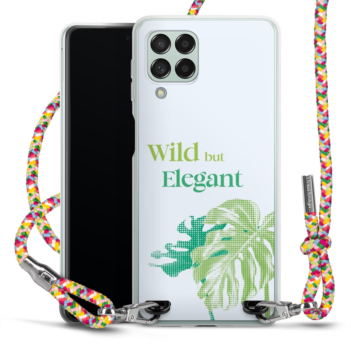 The flexible case is made from a highquality TPU material (thermoplastic Polyurethan). Thanks to its longlasting and break resistant characterisitcs, the case is flexible yet consistent in form and has a great grip and feel. The textile strap made from Polyester gives a chic yet casual accent allowing you to carry your phone like a bag or necklace - a practical gadget perfect for your next adventure. The textile strap is about 1.70 meters long and the length can easily be adjusted through the knots. Our Carry Case is available in Colourful, Mint-Camouflage, Very-Berry, Sahara-Sand and Sparkling-Neon. The ends of the textile strap are covered with metallic end caps to protect them against fraying.