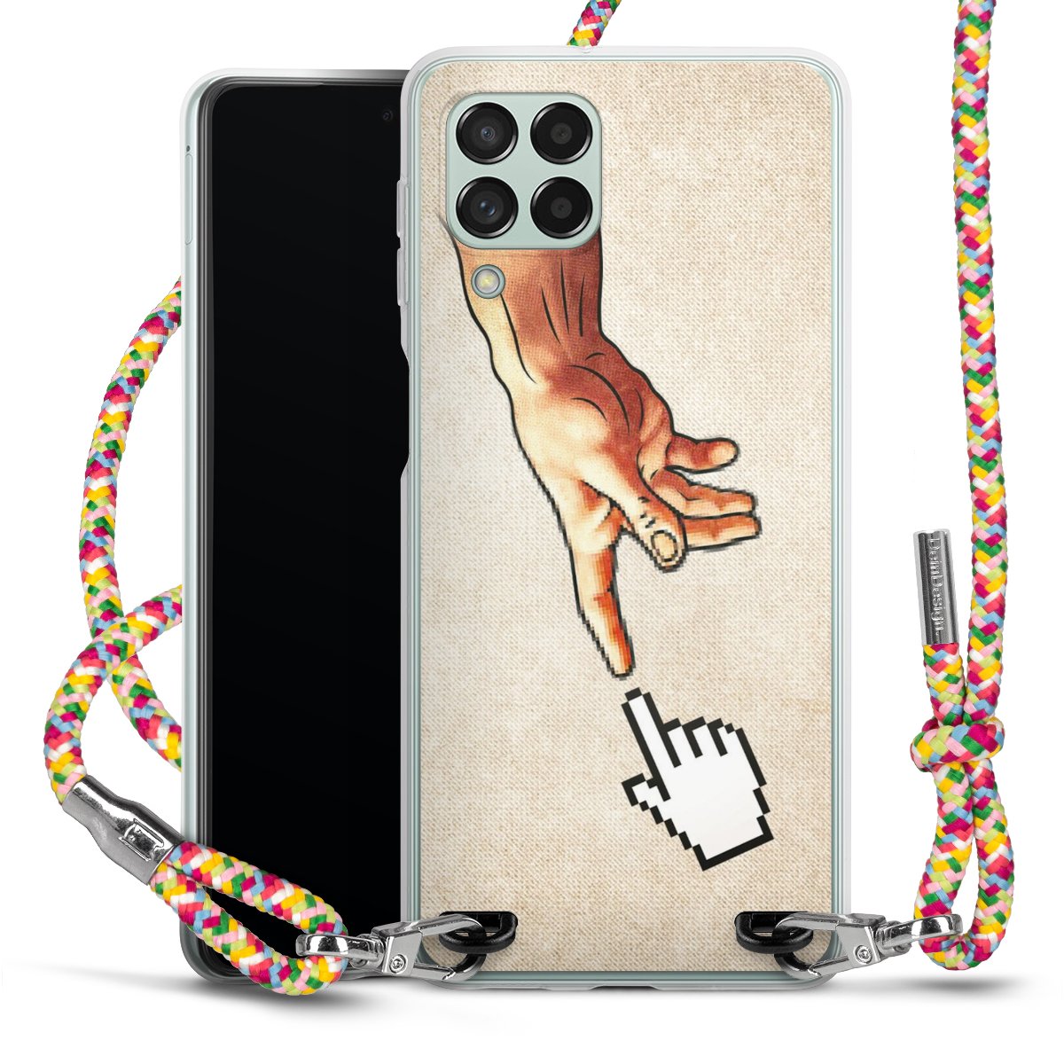 The flexible case is made from a highquality TPU material (thermoplastic Polyurethan). Thanks to its longlasting and break resistant characterisitcs, the case is flexible yet consistent in form and has a great grip and feel. The textile strap made from Polyester gives a chic yet casual accent allowing you to carry your phone like a bag or necklace - a practical gadget perfect for your next adventure. The textile strap is about 1.70 meters long and the length can easily be adjusted through the knots. Our Carry Case is available in Colourful, Mint-Camouflage, Very-Berry, Sahara-Sand and Sparkling-Neon. The ends of the textile strap are covered with metallic end caps to protect them against fraying.