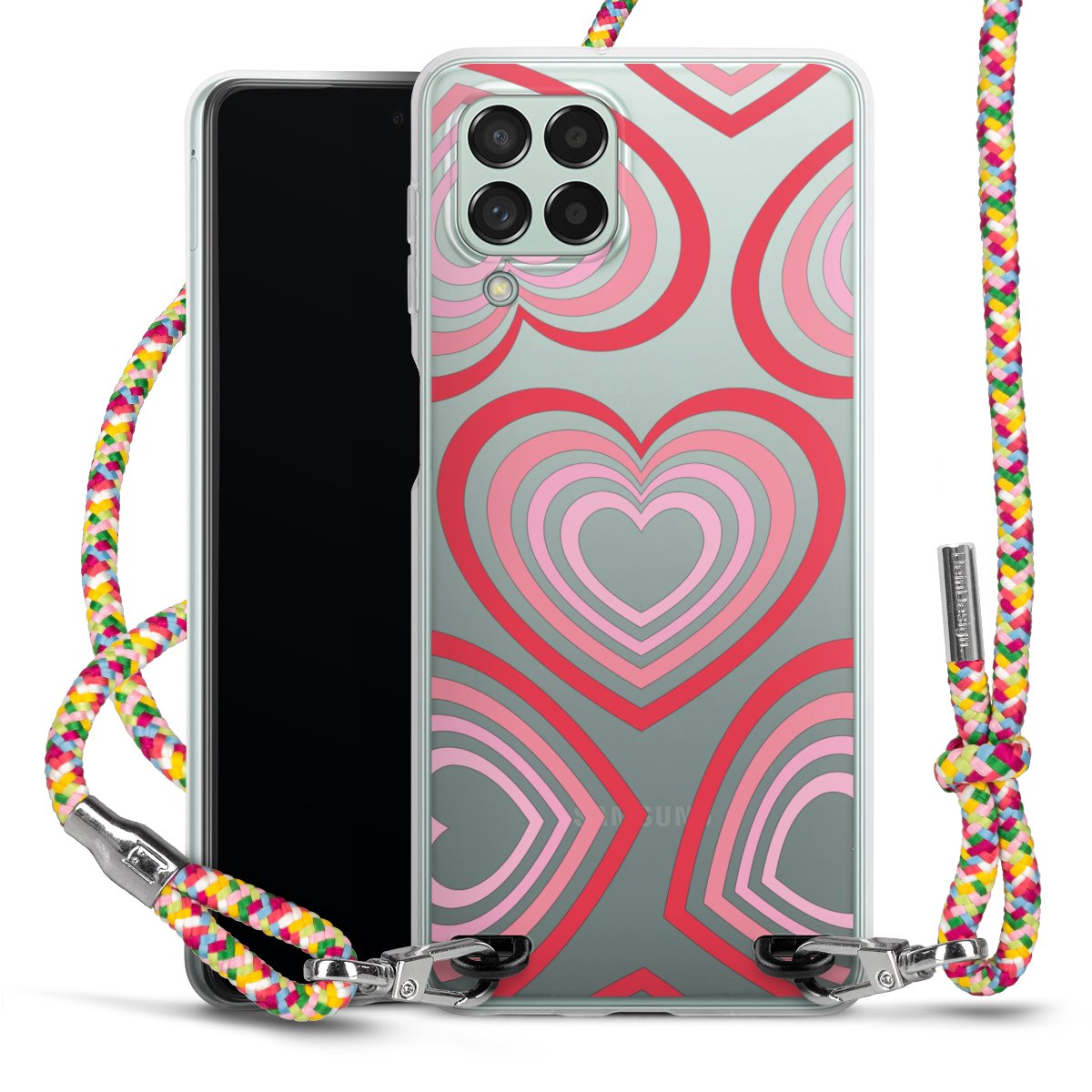 The flexible case is made from a highquality TPU material (thermoplastic Polyurethan). Thanks to its longlasting and break resistant characterisitcs, the case is flexible yet consistent in form and has a great grip and feel. The textile strap made from Polyester gives a chic yet casual accent allowing you to carry your phone like a bag or necklace - a practical gadget perfect for your next adventure. The textile strap is about 1.70 meters long and the length can easily be adjusted through the knots. Our Carry Case is available in Colourful, Mint-Camouflage, Very-Berry, Sahara-Sand and Sparkling-Neon. The ends of the textile strap are covered with metallic end caps to protect them against fraying.