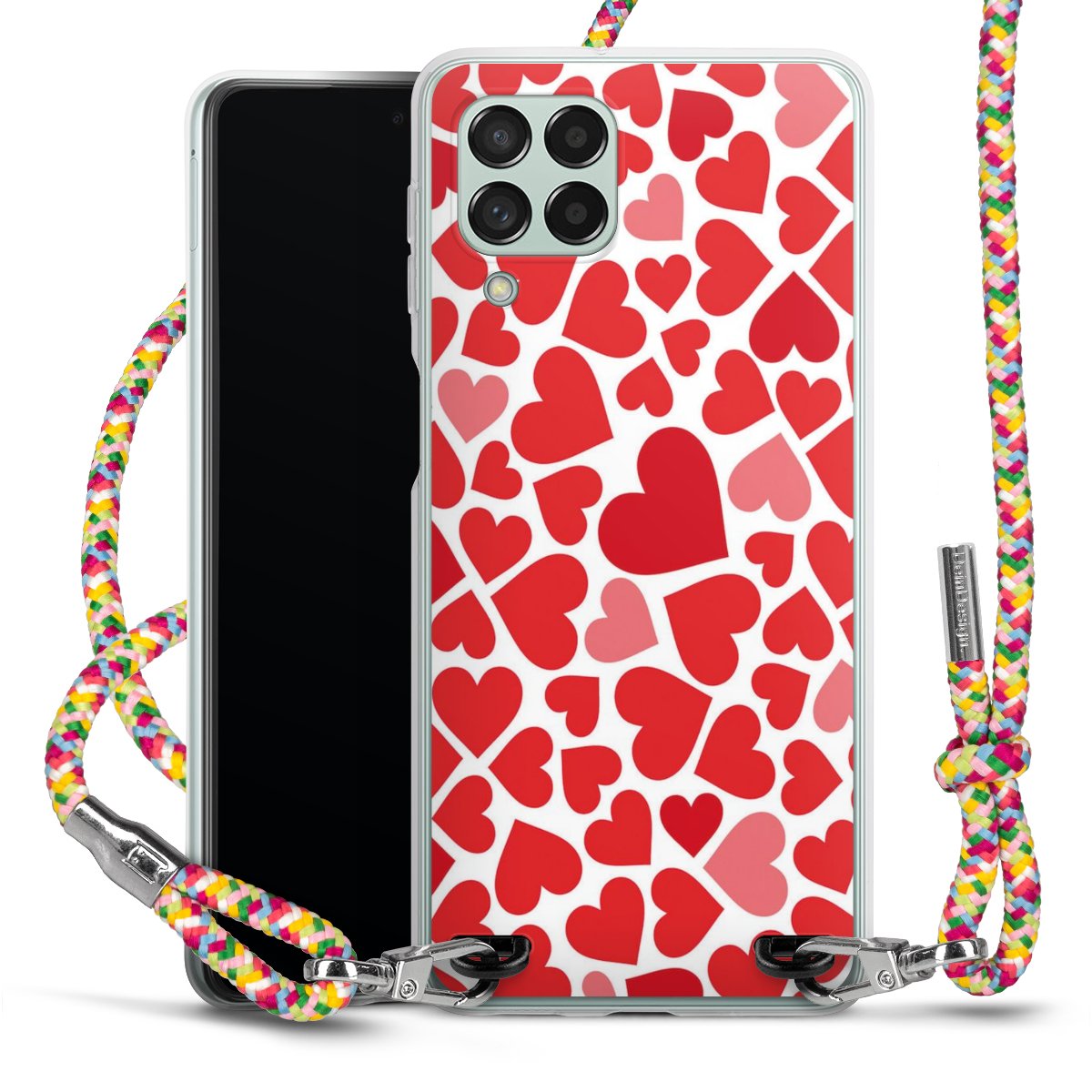 The flexible case is made from a highquality TPU material (thermoplastic Polyurethan). Thanks to its longlasting and break resistant characterisitcs, the case is flexible yet consistent in form and has a great grip and feel. The textile strap made from Polyester gives a chic yet casual accent allowing you to carry your phone like a bag or necklace - a practical gadget perfect for your next adventure. The textile strap is about 1.70 meters long and the length can easily be adjusted through the knots. Our Carry Case is available in Colourful, Mint-Camouflage, Very-Berry, Sahara-Sand and Sparkling-Neon. The ends of the textile strap are covered with metallic end caps to protect them against fraying.