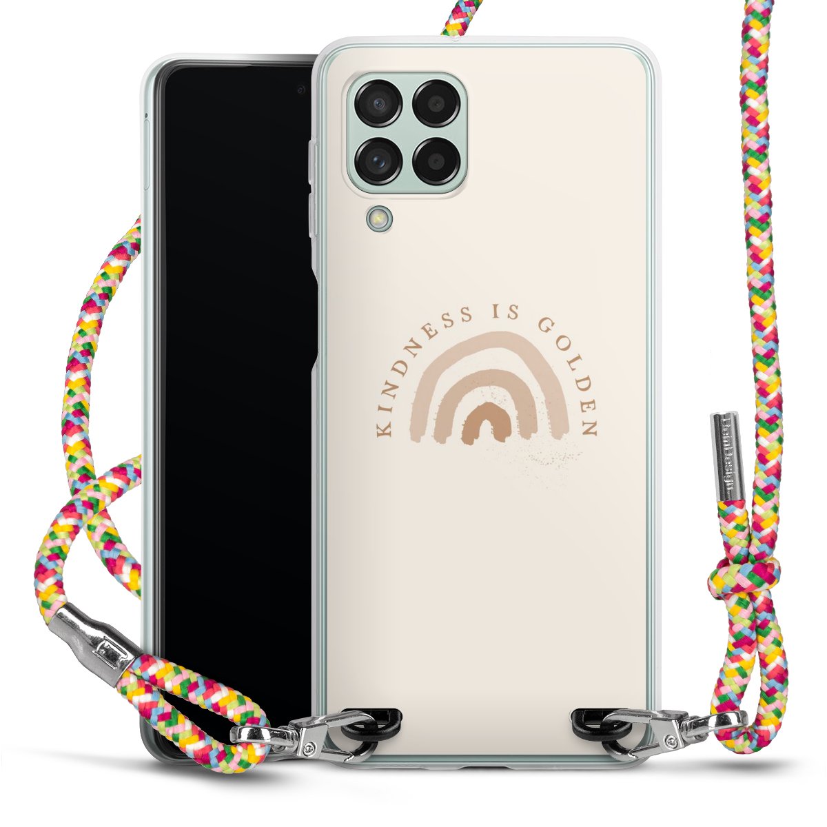 The flexible case is made from a highquality TPU material (thermoplastic Polyurethan). Thanks to its longlasting and break resistant characterisitcs, the case is flexible yet consistent in form and has a great grip and feel. The textile strap made from Polyester gives a chic yet casual accent allowing you to carry your phone like a bag or necklace - a practical gadget perfect for your next adventure. The textile strap is about 1.70 meters long and the length can easily be adjusted through the knots. Our Carry Case is available in Colourful, Mint-Camouflage, Very-Berry, Sahara-Sand and Sparkling-Neon. The ends of the textile strap are covered with metallic end caps to protect them against fraying.