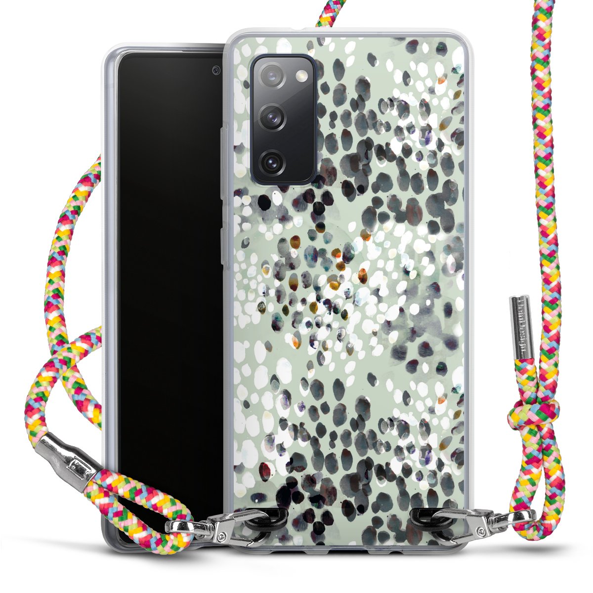 The flexible case is made from a highquality TPU material (thermoplastic Polyurethan). Thanks to its longlasting and break resistant characterisitcs, the case is flexible yet consistent in form and has a great grip and feel. The textile strap made from Polyester gives a chic yet casual accent allowing you to carry your phone like a bag or necklace - a practical gadget perfect for your next adventure. The textile strap is about 1.70 meters long and the length can easily be adjusted through the knots. Our Carry Case is available in Colourful, Mint-Camouflage, Very-Berry, Sahara-Sand and Sparkling-Neon. The ends of the textile strap are covered with metallic end caps to protect them against fraying.