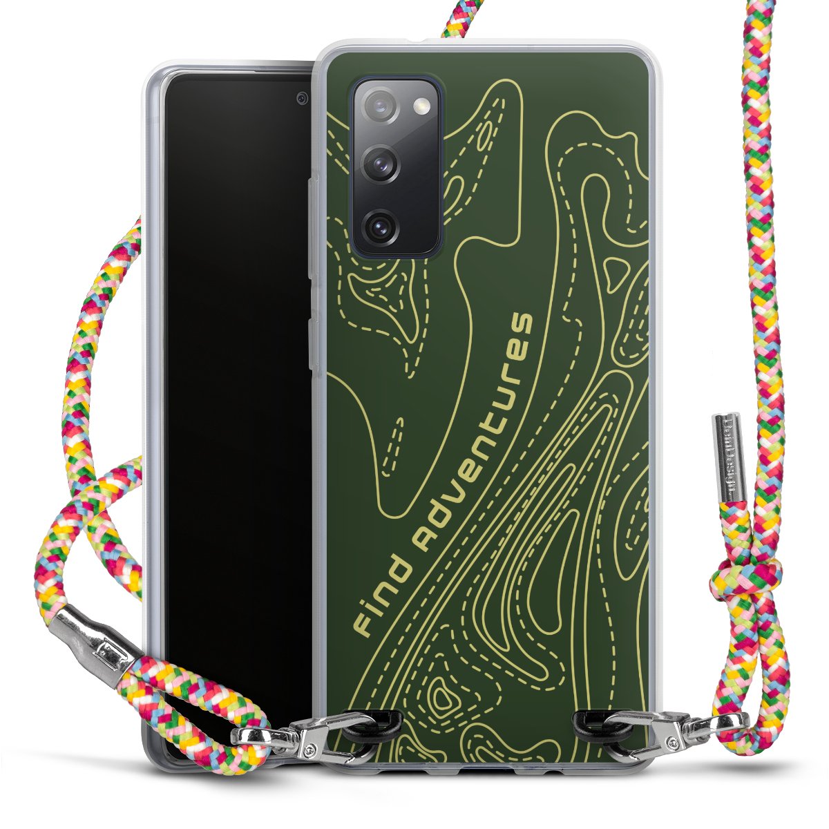 The flexible case is made from a highquality TPU material (thermoplastic Polyurethan). Thanks to its longlasting and break resistant characterisitcs, the case is flexible yet consistent in form and has a great grip and feel. The textile strap made from Polyester gives a chic yet casual accent allowing you to carry your phone like a bag or necklace - a practical gadget perfect for your next adventure. The textile strap is about 1.70 meters long and the length can easily be adjusted through the knots. Our Carry Case is available in Colourful, Mint-Camouflage, Very-Berry, Sahara-Sand and Sparkling-Neon. The ends of the textile strap are covered with metallic end caps to protect them against fraying.