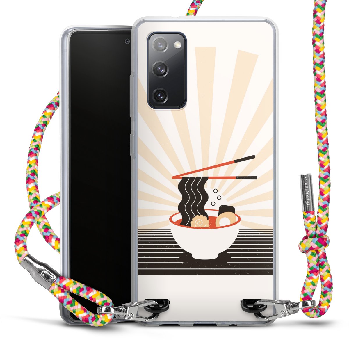The flexible case is made from a highquality TPU material (thermoplastic Polyurethan). Thanks to its longlasting and break resistant characterisitcs, the case is flexible yet consistent in form and has a great grip and feel. The textile strap made from Polyester gives a chic yet casual accent allowing you to carry your phone like a bag or necklace - a practical gadget perfect for your next adventure. The textile strap is about 1.70 meters long and the length can easily be adjusted through the knots. Our Carry Case is available in Colourful, Mint-Camouflage, Very-Berry, Sahara-Sand and Sparkling-Neon. The ends of the textile strap are covered with metallic end caps to protect them against fraying.