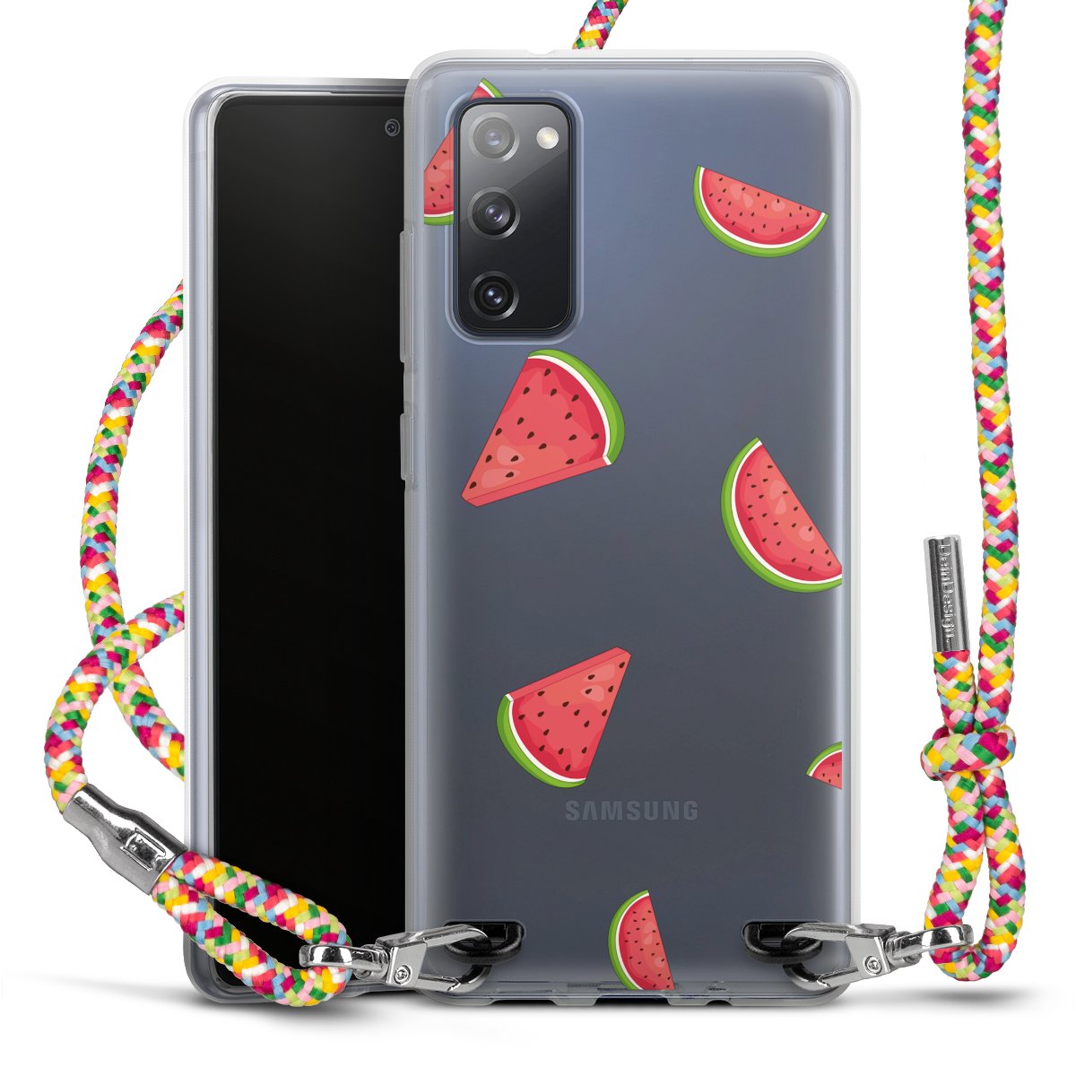 The flexible case is made from a highquality TPU material (thermoplastic Polyurethan). Thanks to its longlasting and break resistant characterisitcs, the case is flexible yet consistent in form and has a great grip and feel. The textile strap made from Polyester gives a chic yet casual accent allowing you to carry your phone like a bag or necklace - a practical gadget perfect for your next adventure. The textile strap is about 1.70 meters long and the length can easily be adjusted through the knots. Our Carry Case is available in Colourful, Mint-Camouflage, Very-Berry, Sahara-Sand and Sparkling-Neon. The ends of the textile strap are covered with metallic end caps to protect them against fraying.