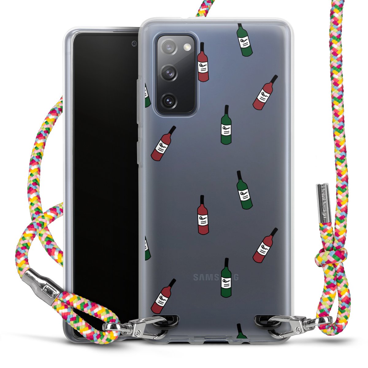 The flexible case is made from a highquality TPU material (thermoplastic Polyurethan). Thanks to its longlasting and break resistant characterisitcs, the case is flexible yet consistent in form and has a great grip and feel. The textile strap made from Polyester gives a chic yet casual accent allowing you to carry your phone like a bag or necklace - a practical gadget perfect for your next adventure. The textile strap is about 1.70 meters long and the length can easily be adjusted through the knots. Our Carry Case is available in Colourful, Mint-Camouflage, Very-Berry, Sahara-Sand and Sparkling-Neon. The ends of the textile strap are covered with metallic end caps to protect them against fraying.